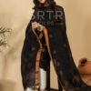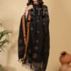 Classic Black Handloom Linen Suit with Copper Zari Border