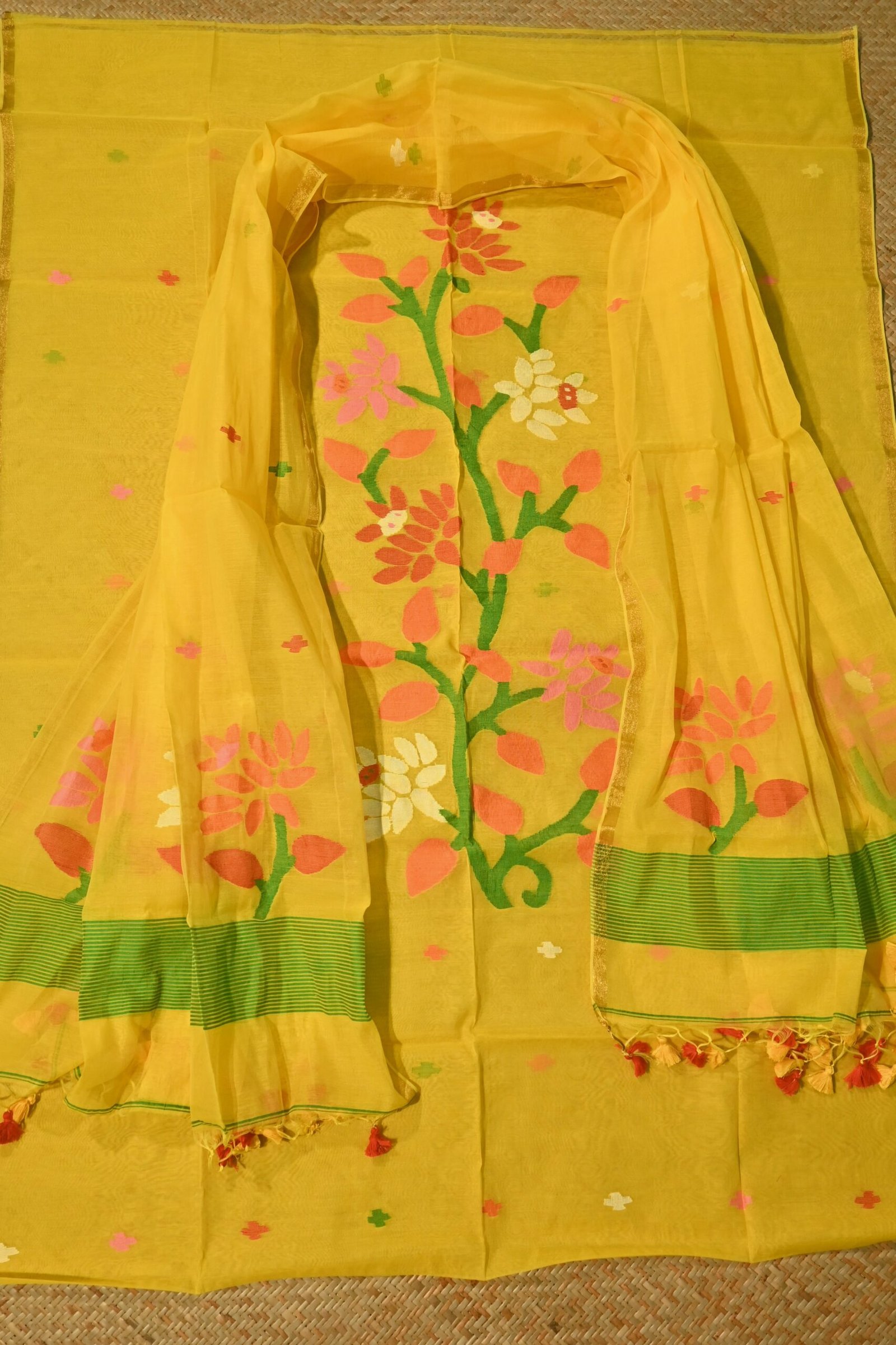 Crafted with precision and love, our Muslin Jamdani Suit (UNSTITCHED) offers a perfect blend of traditional craftsmanship and modern aesthetics. This elegant 2-piece set is infused with the timeless Jamdani weaving technique, celebrated for its intricate patterns and lightweight texture. With this suit, you wear not just fabric, but a piece of cultural heritage that speaks of sophistication and luxury.