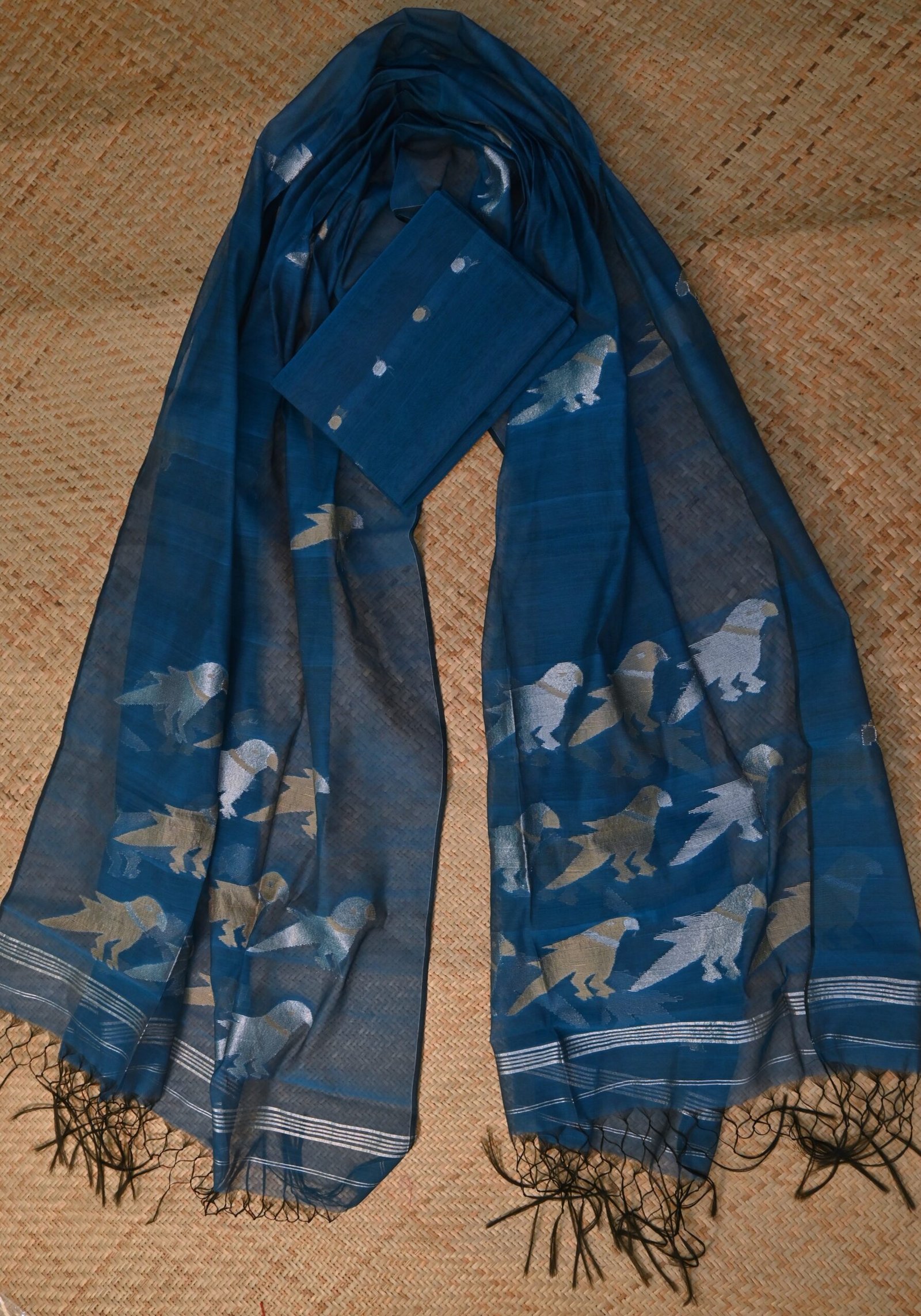 The unstitched format of this Jamdani suit allows endless styling possibilities. Whether you prefer a classic look or a contemporary design, you can tailor it to your specific aesthetic. This two-piece set includes a detailed dupatta and material for a kurta, offering cohesive yet customizable elegance. The Muslin Jamdani suit is ideal for weddings, holidays, or even gifting to someone special who values timeless tradition and artisanal quality.