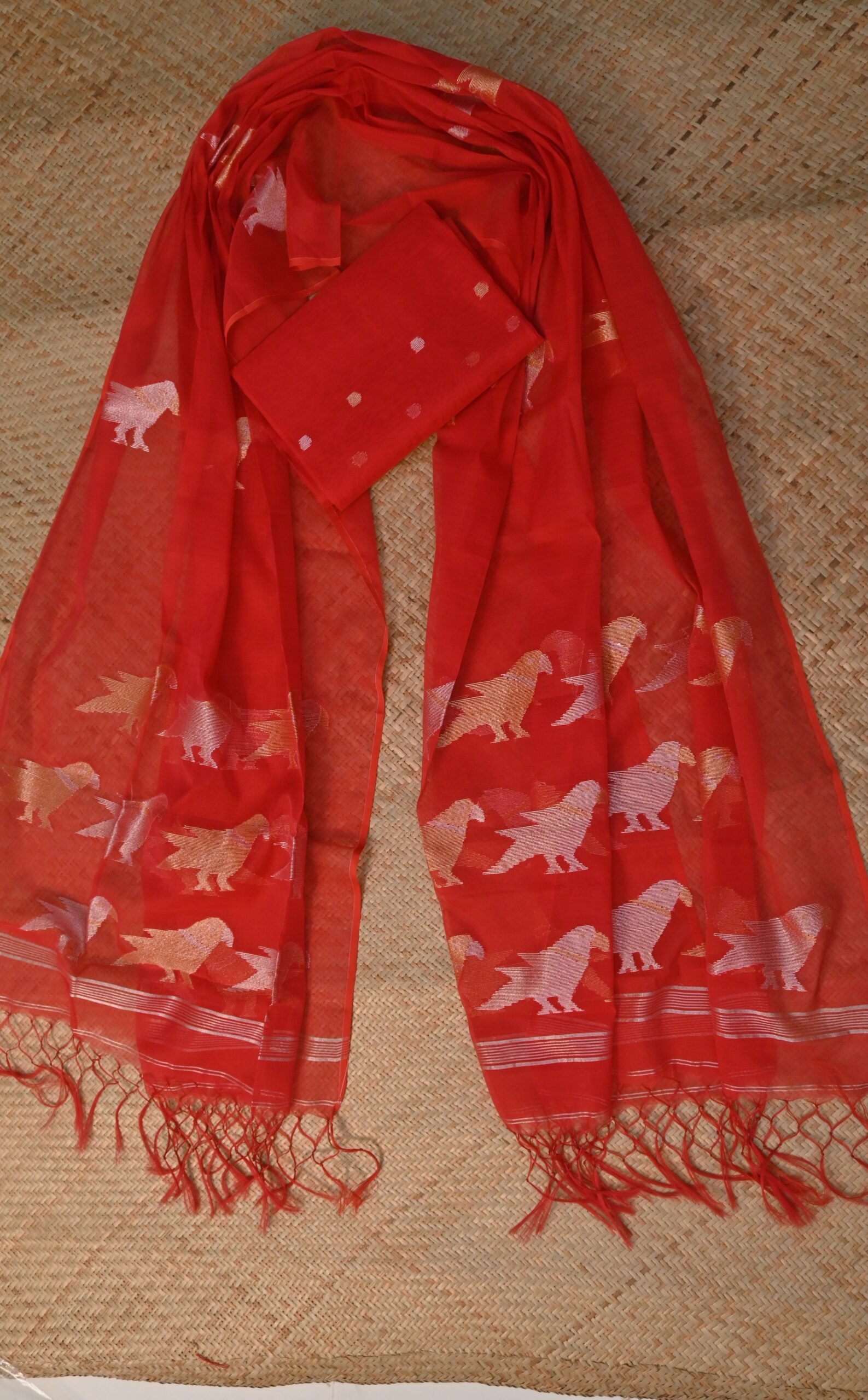 This unstitched 2-piece set offers ultimate versatility, allowing you to tailor it to your preferred fit and style. Whether you fancy a traditional salwar-kameez or a more contemporary Indo-Western silhouette, this Muslin Jamdani suit is your canvas to get creative. The elegant motifs and patterns lend themselves beautifully to both minimalist and statement looks, giving you the freedom to style up or down as the event calls for.