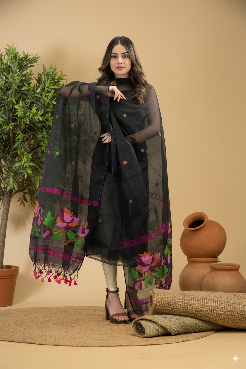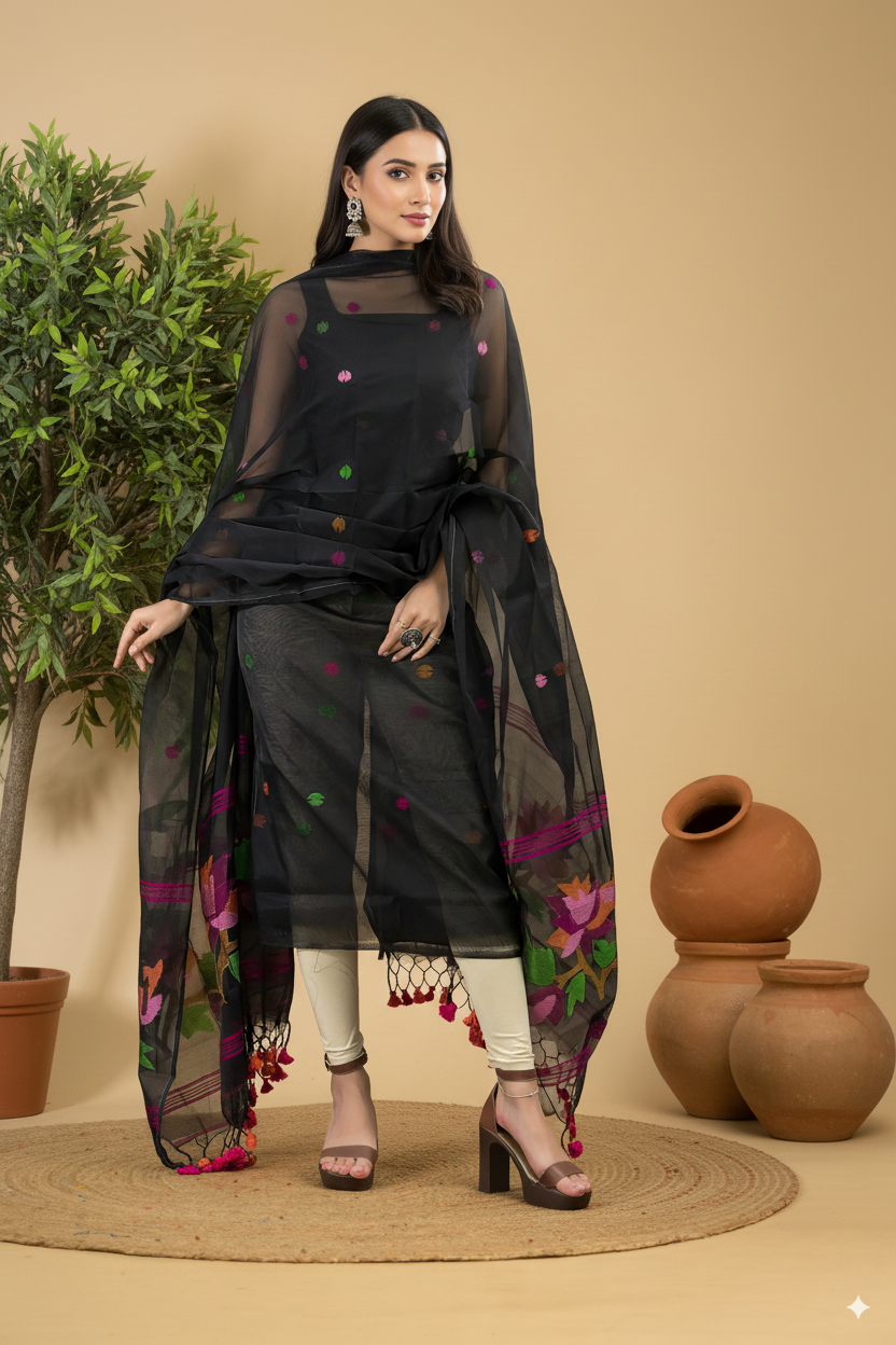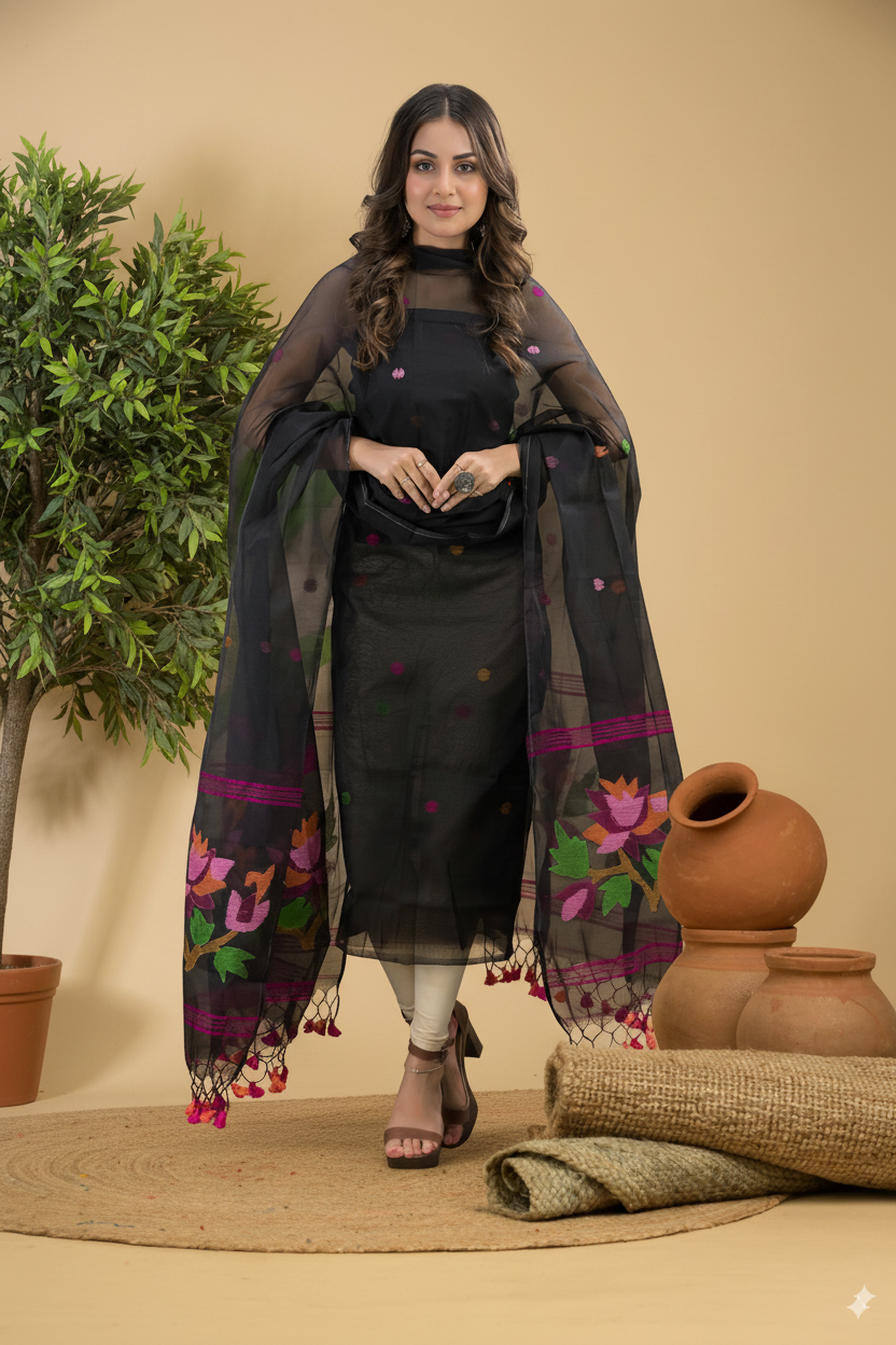 Indulge in elegance with our Unstitched Jamdani Suit, a 2-piece ensemble crafted from high-quality muslin fabric. This suit is designed to offer a perfect blend of style, comfort, and tradition. Ideal for festive occasions, formal gatherings, or everyday wear, this elegant piece ensures you stand out with grace and sophistication.