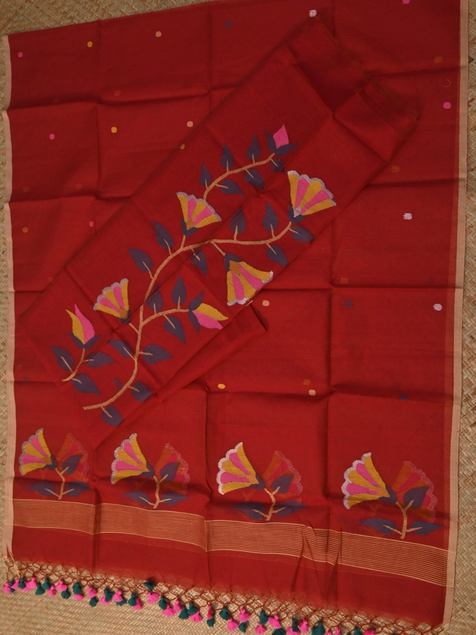 • Work: Jamdani woven floral & butti motifs