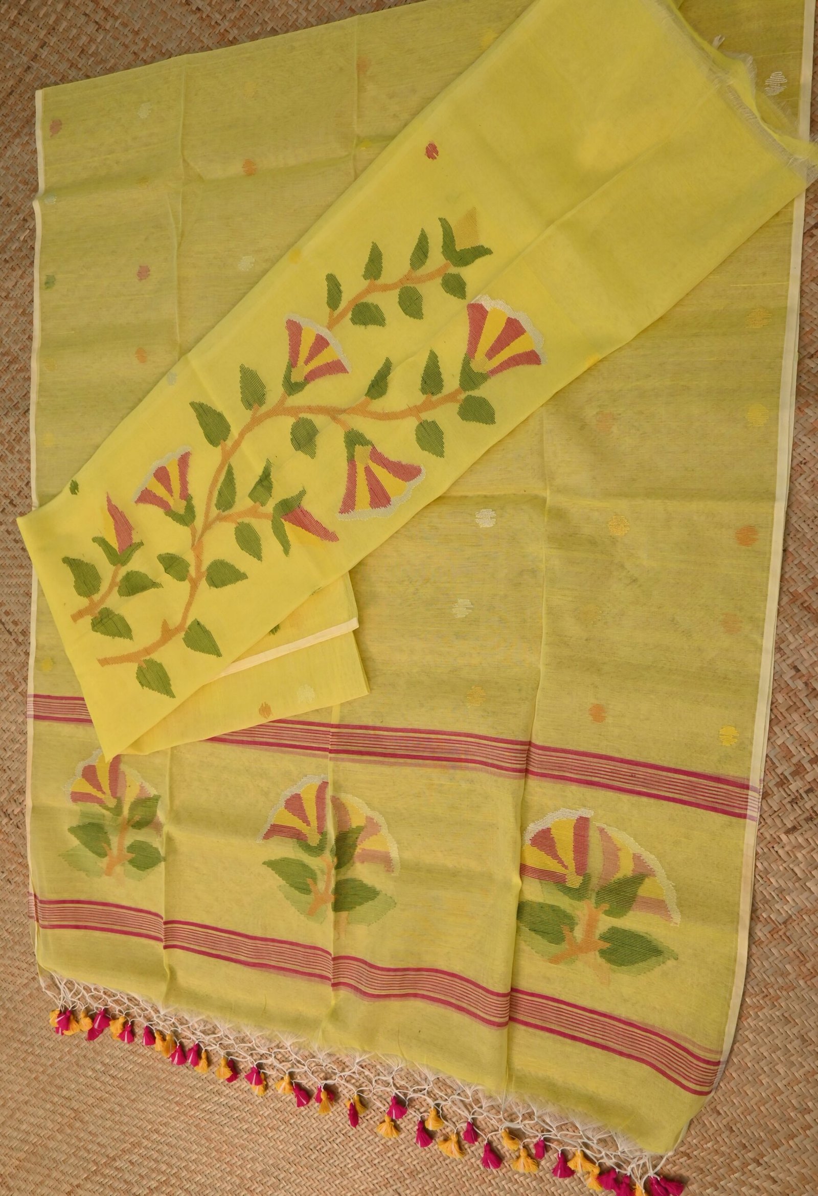The Muslin Jamdani Unstitched Suit Set – Floral Elegance (2-Piece) combines centuries-old Jamdani weaving techniques with modern flair, making it a unique addition to your wardrobe. Handcrafted with precision, this suit set reflects the rich heritage of muslin craftsmanship while embodying timeless grace and sophistication.