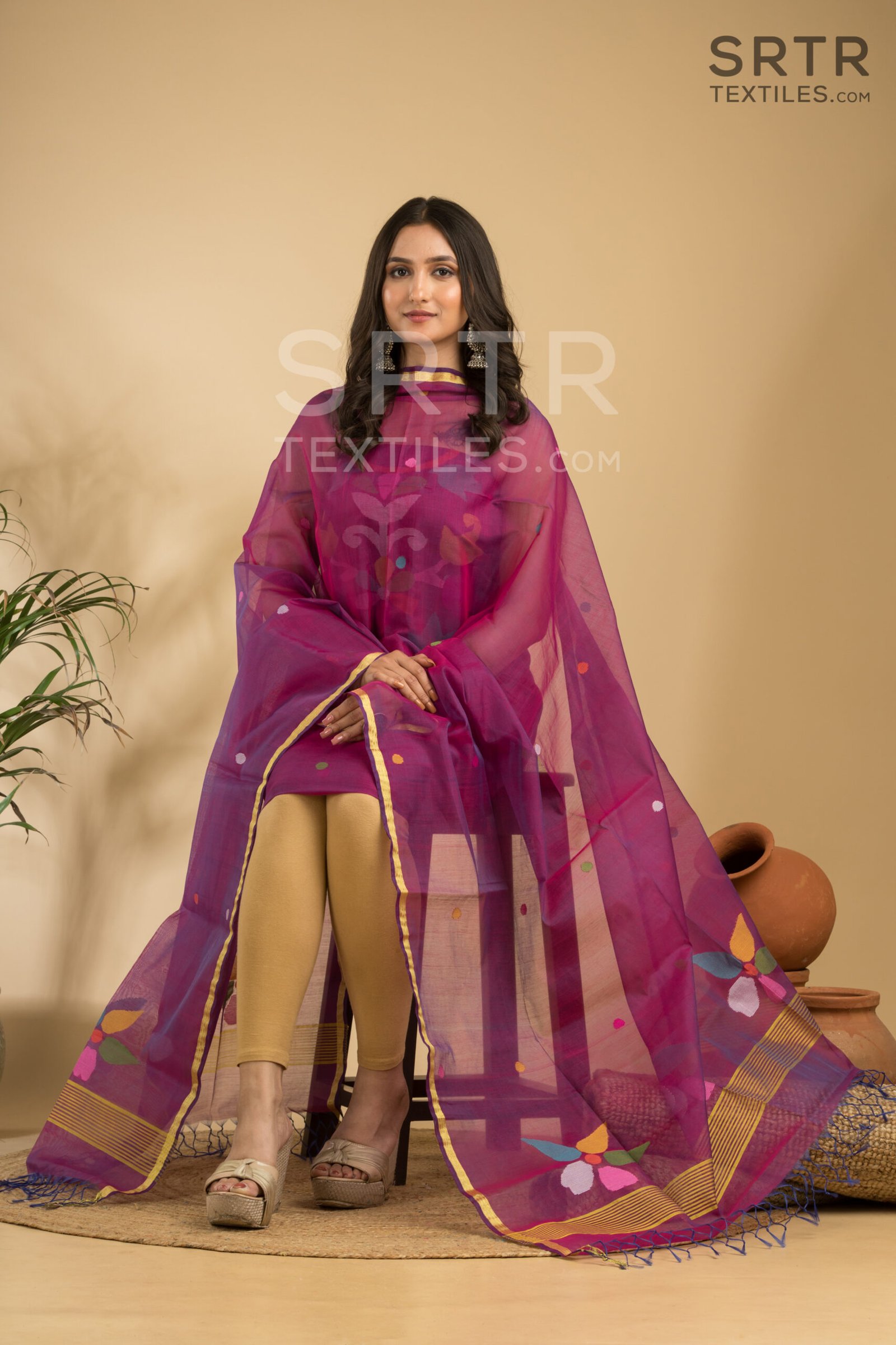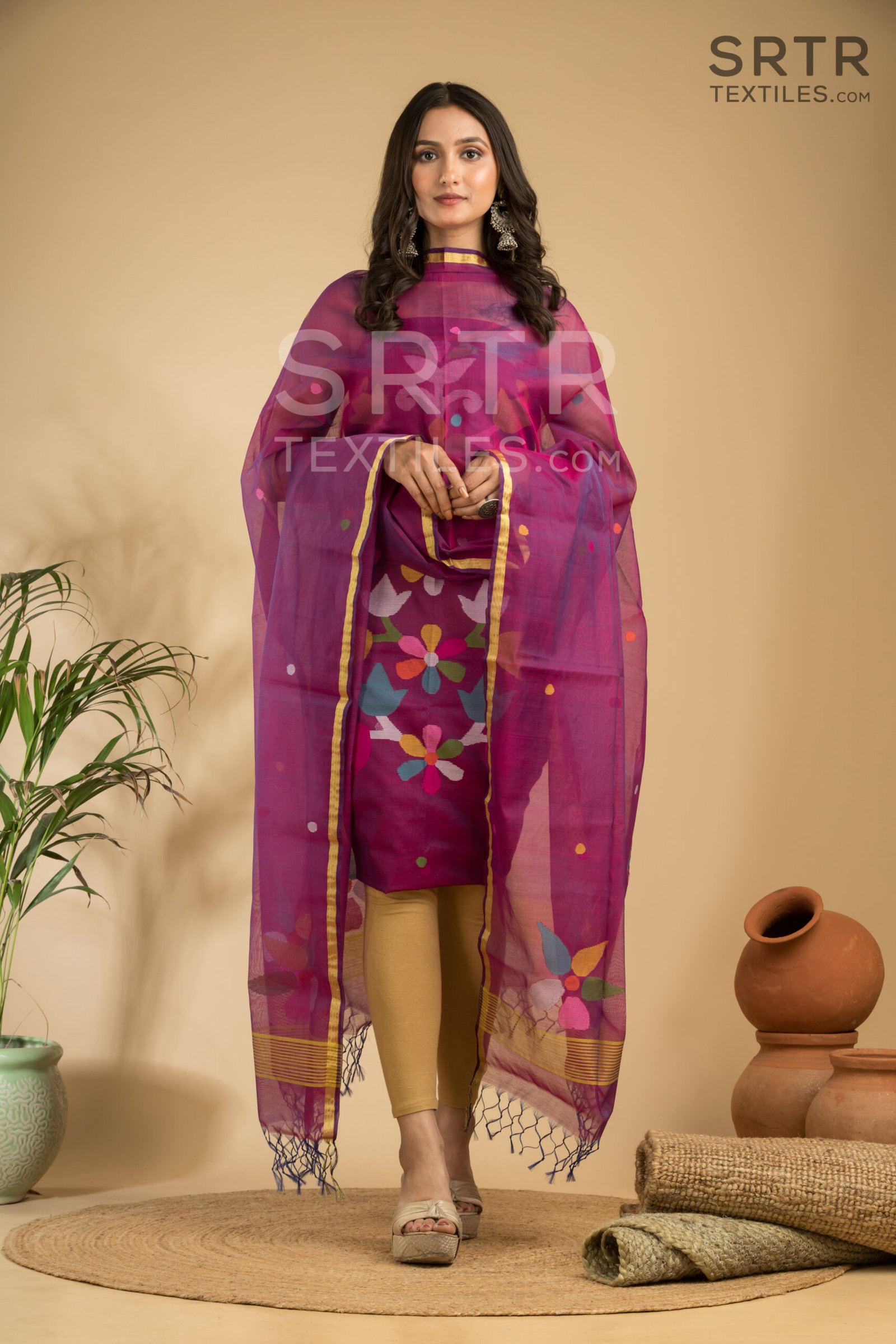 With its luxurious craftsmanship and contemporary design, the Linen Unstitched Jamdani Suit reflects a perfect fusion of traditional weaving techniques and modern fashion sensibilities. Elevate your style and enjoy the sophistication of handcrafted excellence with this exclusive piece from SRTR Textiles.