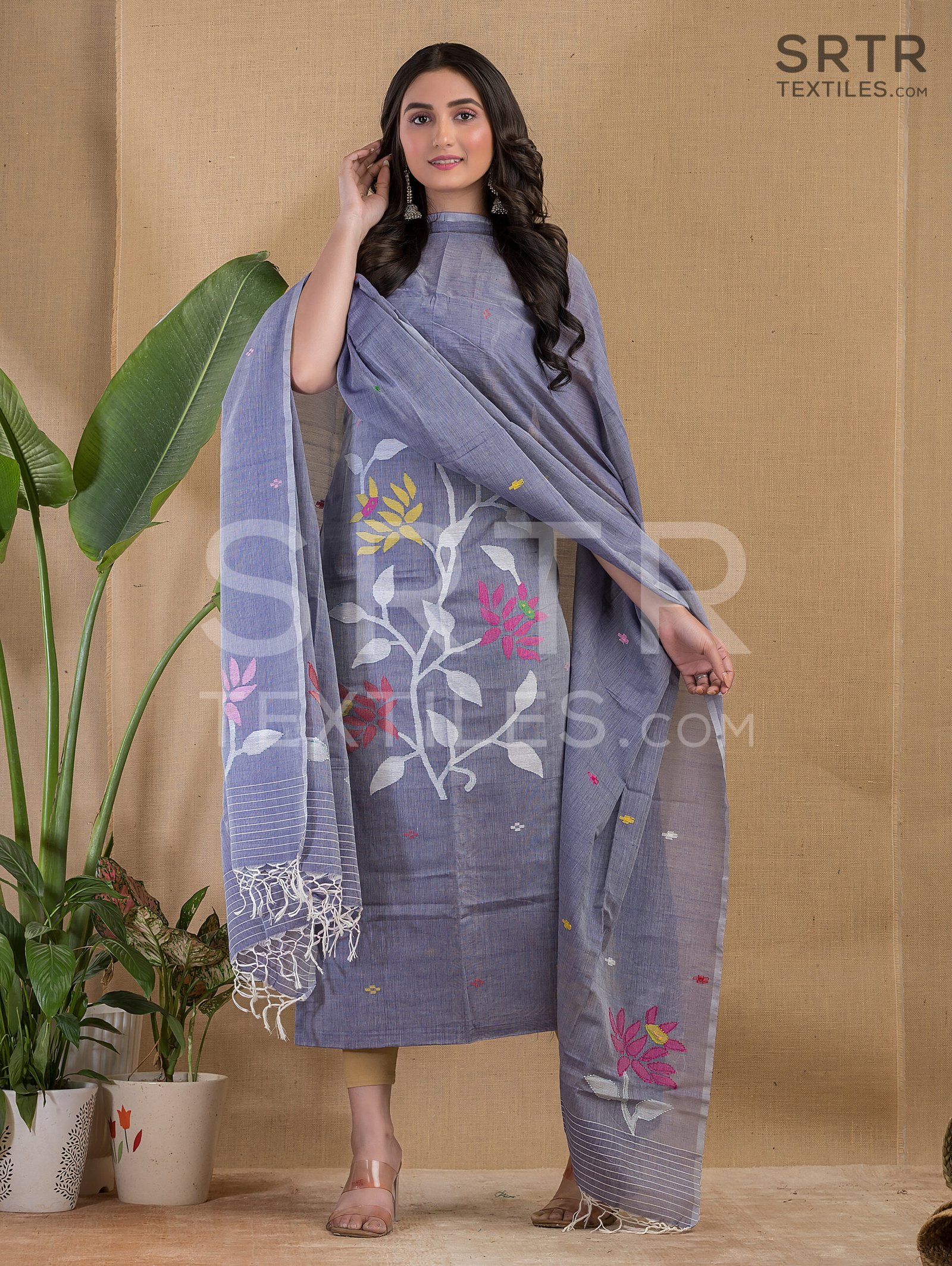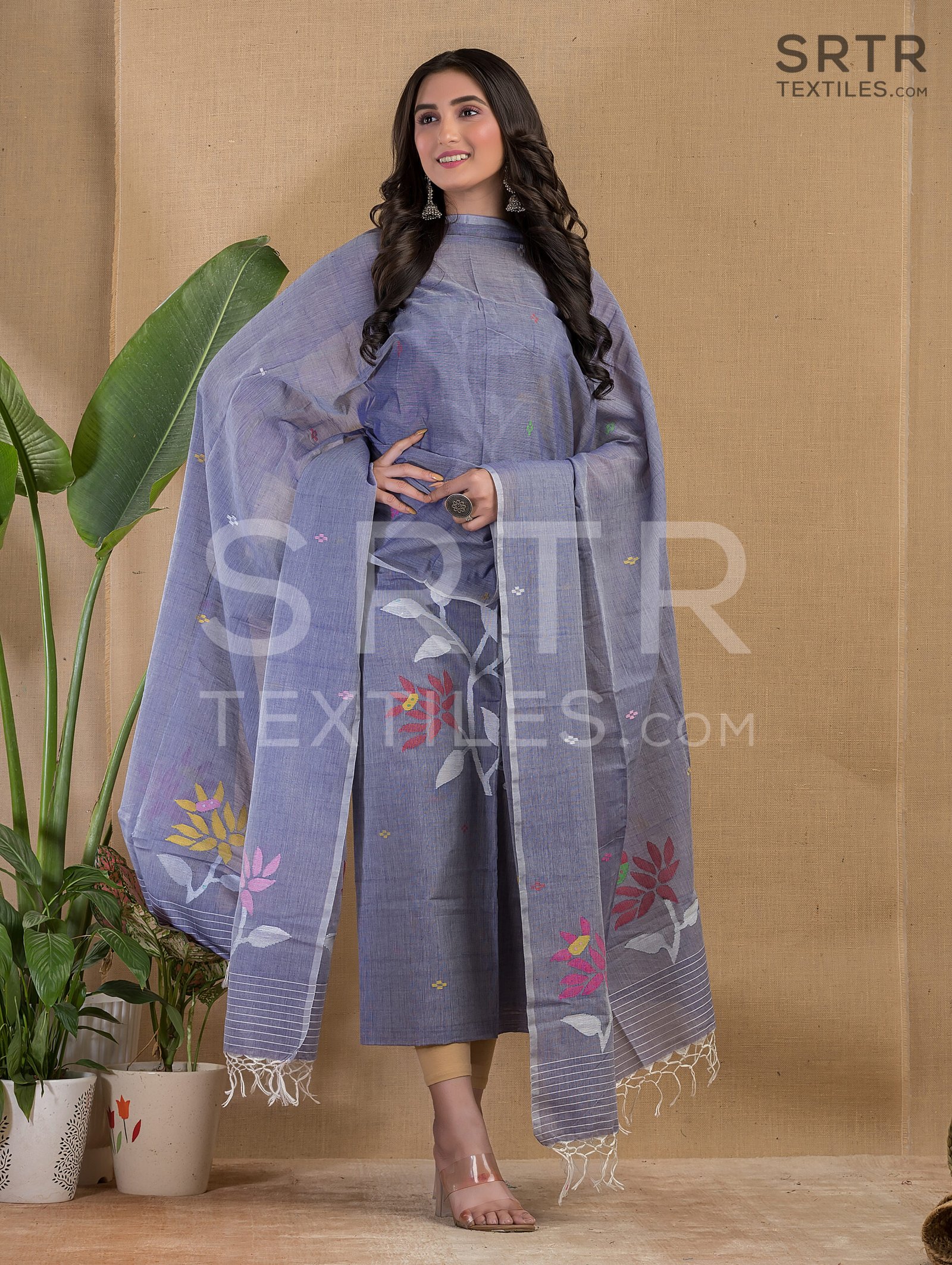 This 2-piece Jamdani suit offers you the freedom to experiment with your personal style. Pair it with elegant accessories or keep it minimal to highlight the intricate patterns of traditional Jamdani weaving. Perfect for festive celebrations, formal gatherings, or casual outings, this suit adapts to the occasion and enhances your overall look effortlessly. If you’re someone who values art, quality, and heritage in your clothing, this set will undoubtedly become a treasured piece in your collection.