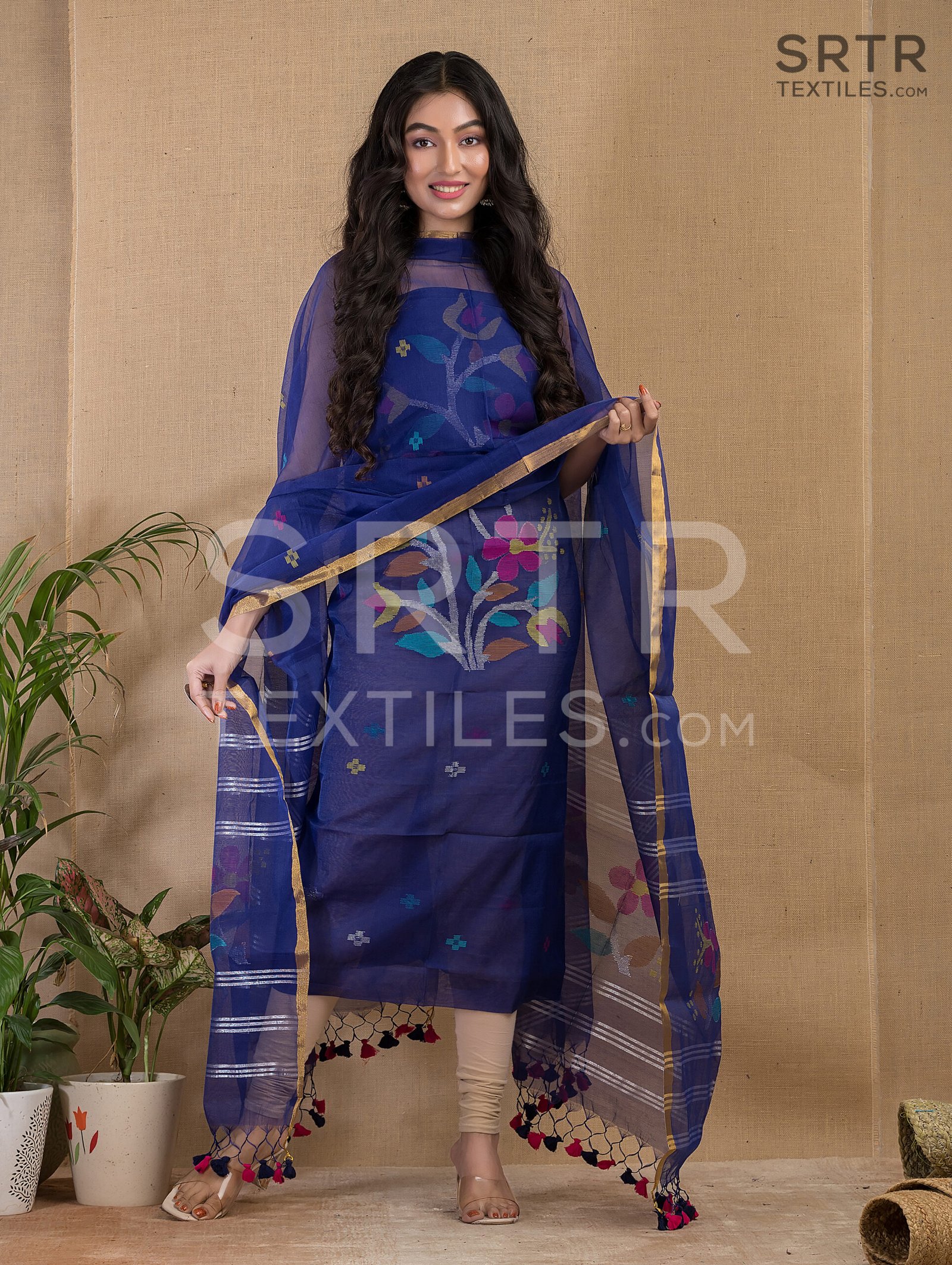 The Muslin Unstitched Jamdani Suit offers you the freedom to unleash your creativity. Whether you prefer intricate embroidery, simple finishes, or bold styles, this set is a blank canvas awaiting your unique touch. Pair it with matching accessories or contrasting pieces to curate a look that speaks volumes about your personal taste. From festive occasions to casual gatherings, this suit adapts gracefully to any setting.