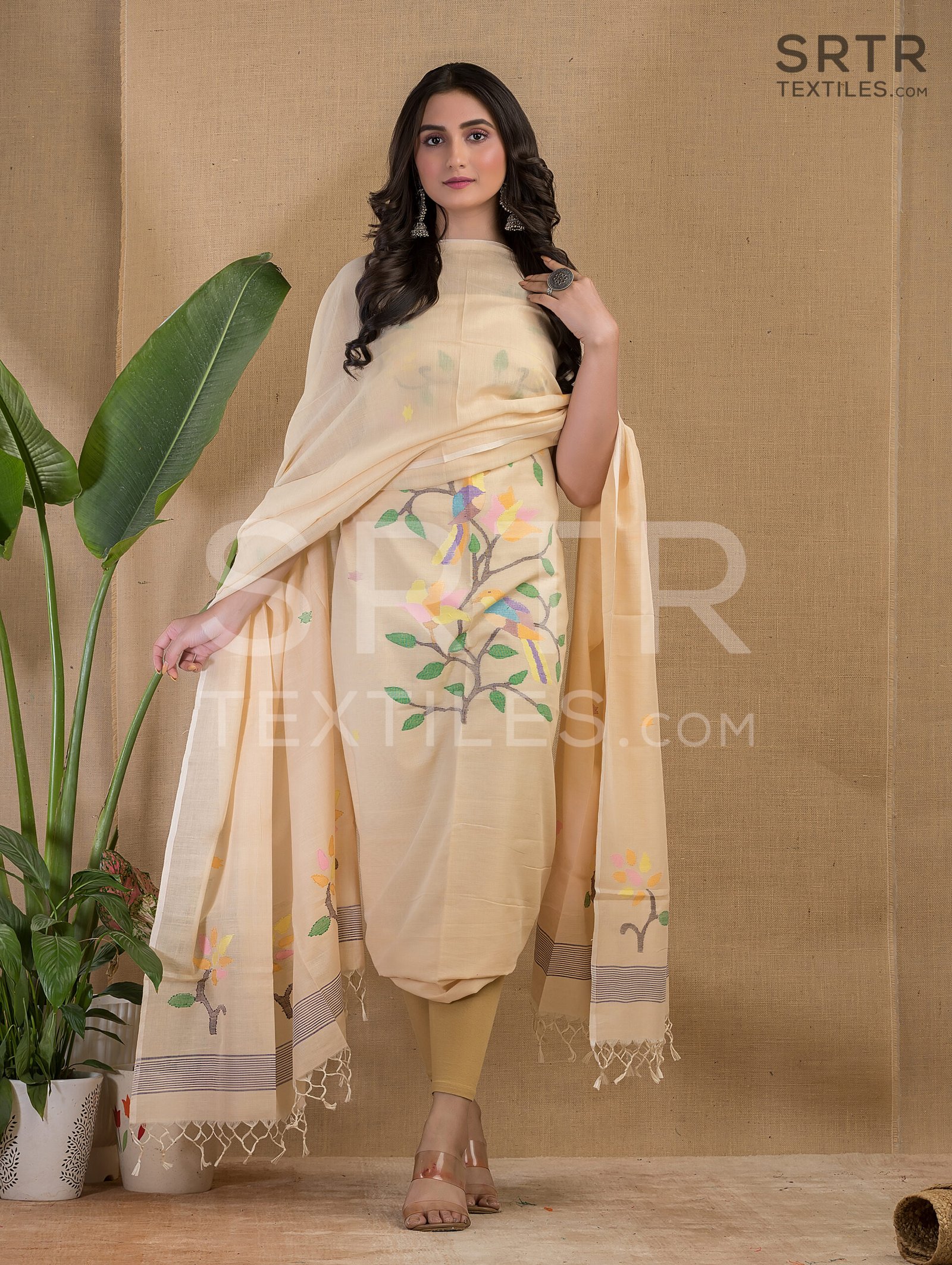 The Pure Cotton Jamdani Suit is tailored to suit a range of occasions, from cultural events and family gatherings to more relaxed semi-formal outings. Its versatile two-piece design allows you to experiment with styling, pairing it with your favorite accessories to create a personalized look. Whether you’re looking to embrace traditional aesthetics or add a touch of contemporary styling, this Jamdani suit is undoubtedly versatile enough to meet your fashion aspirations.