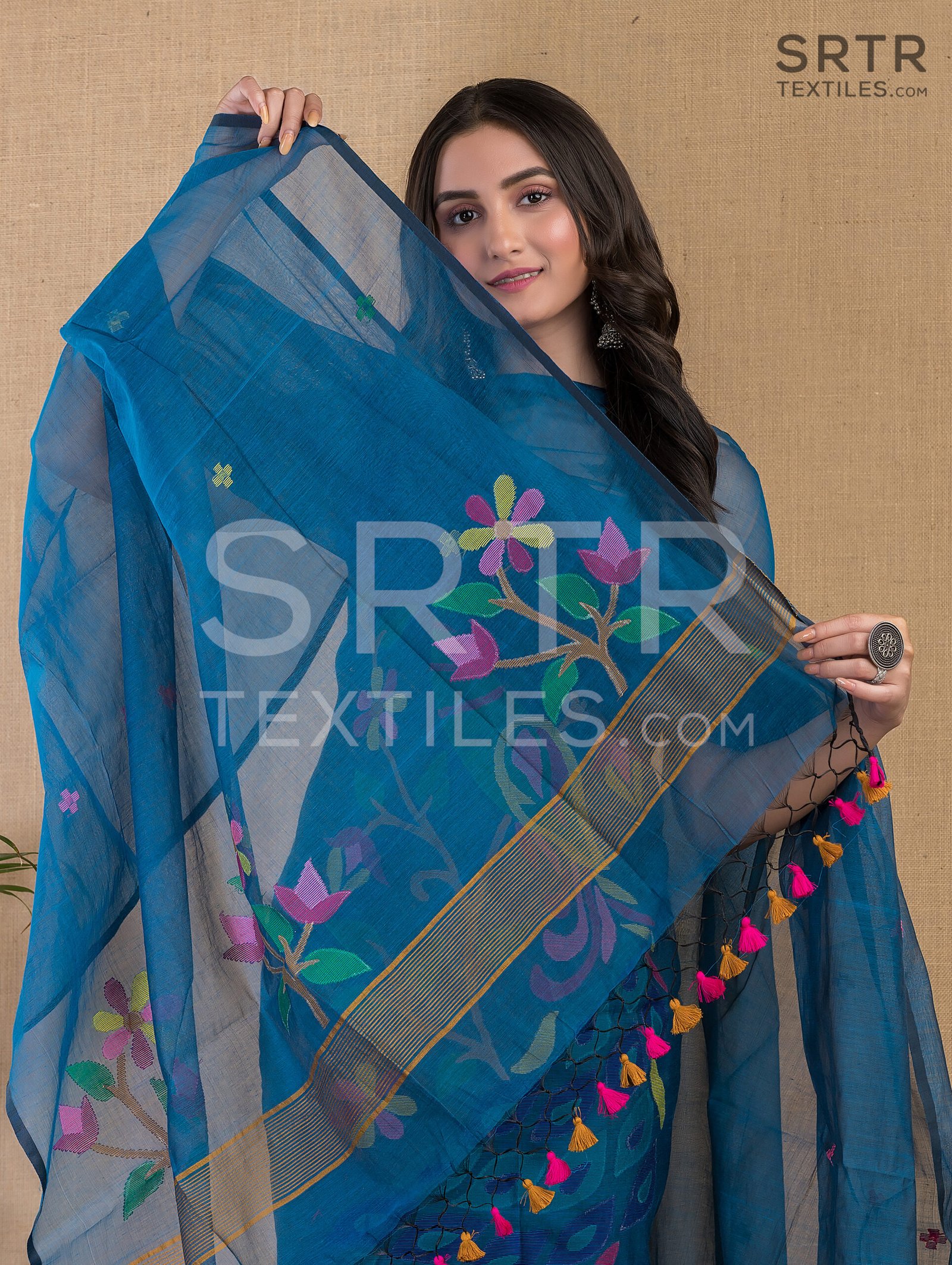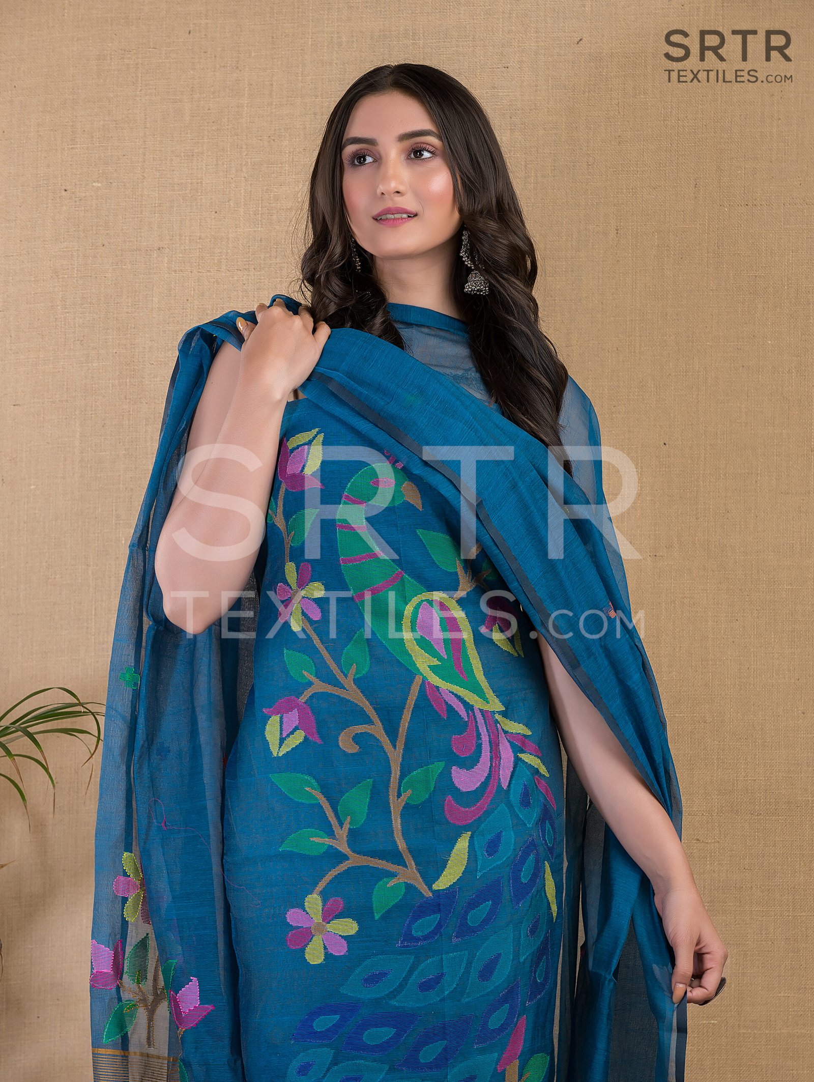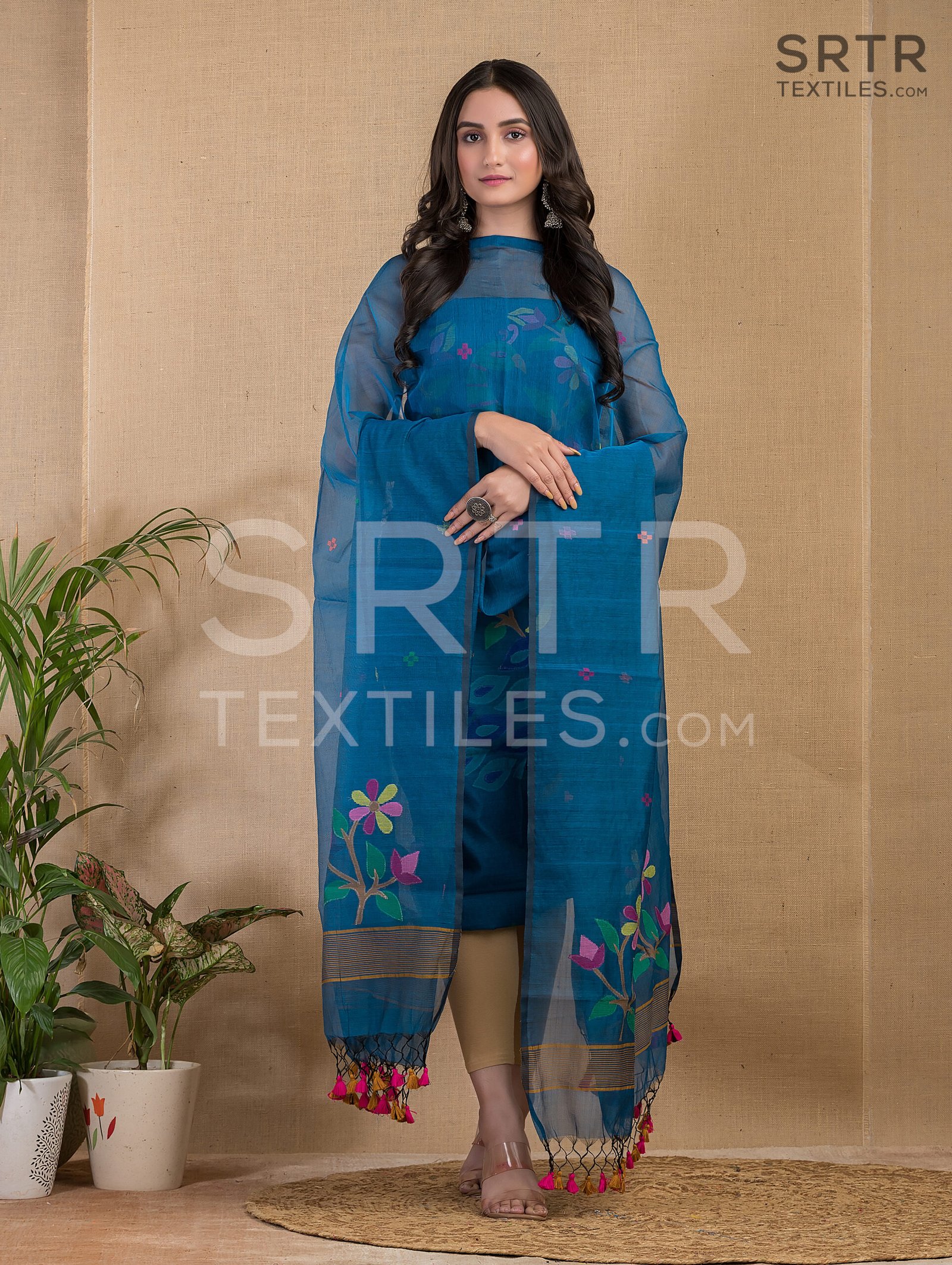 Muslin Unstitched Jamdani Suit – Elegant 2-Piece Set