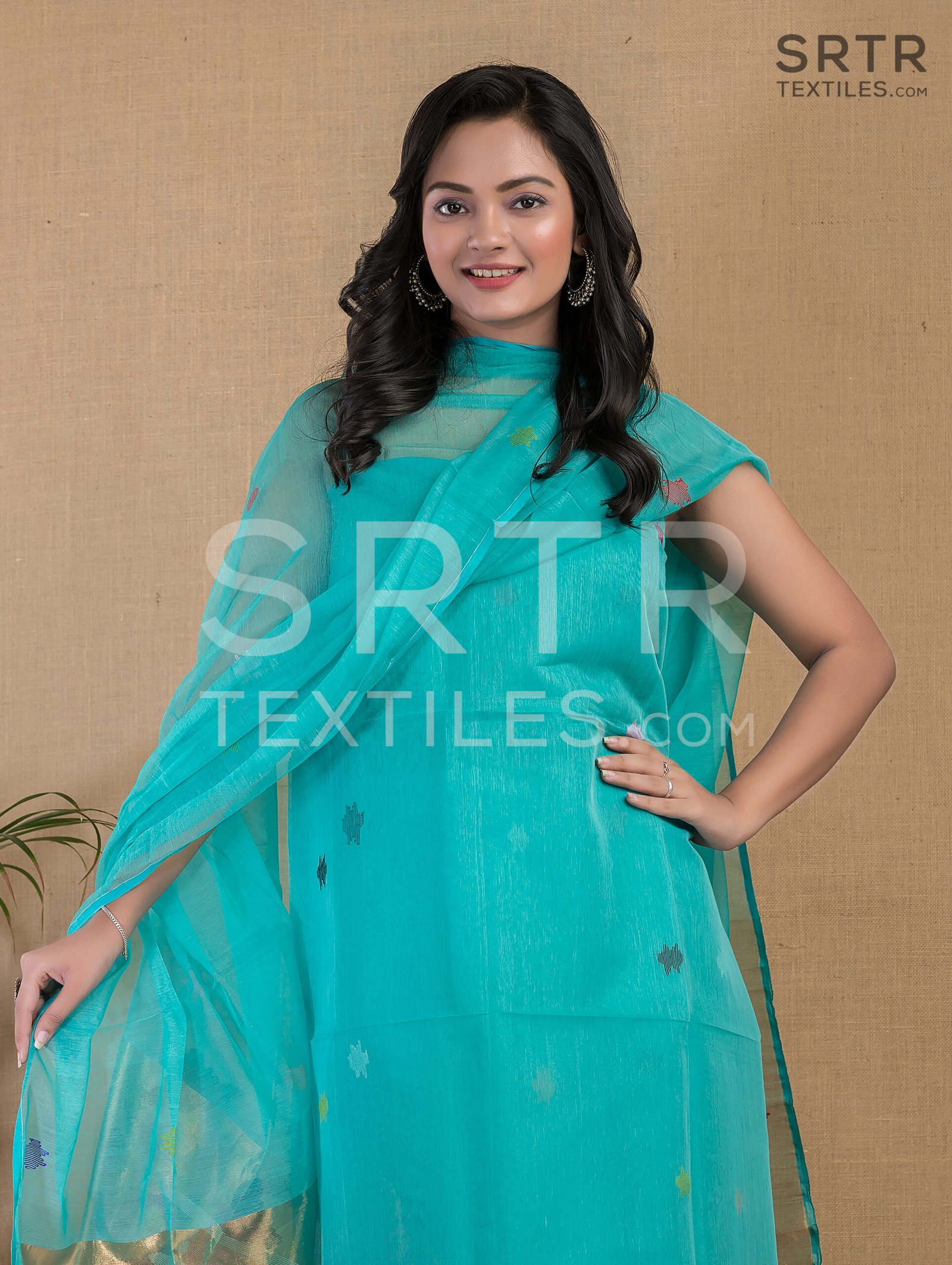 Muslin Unstitched Jamdani Suit – Elegant 2-Piece Set