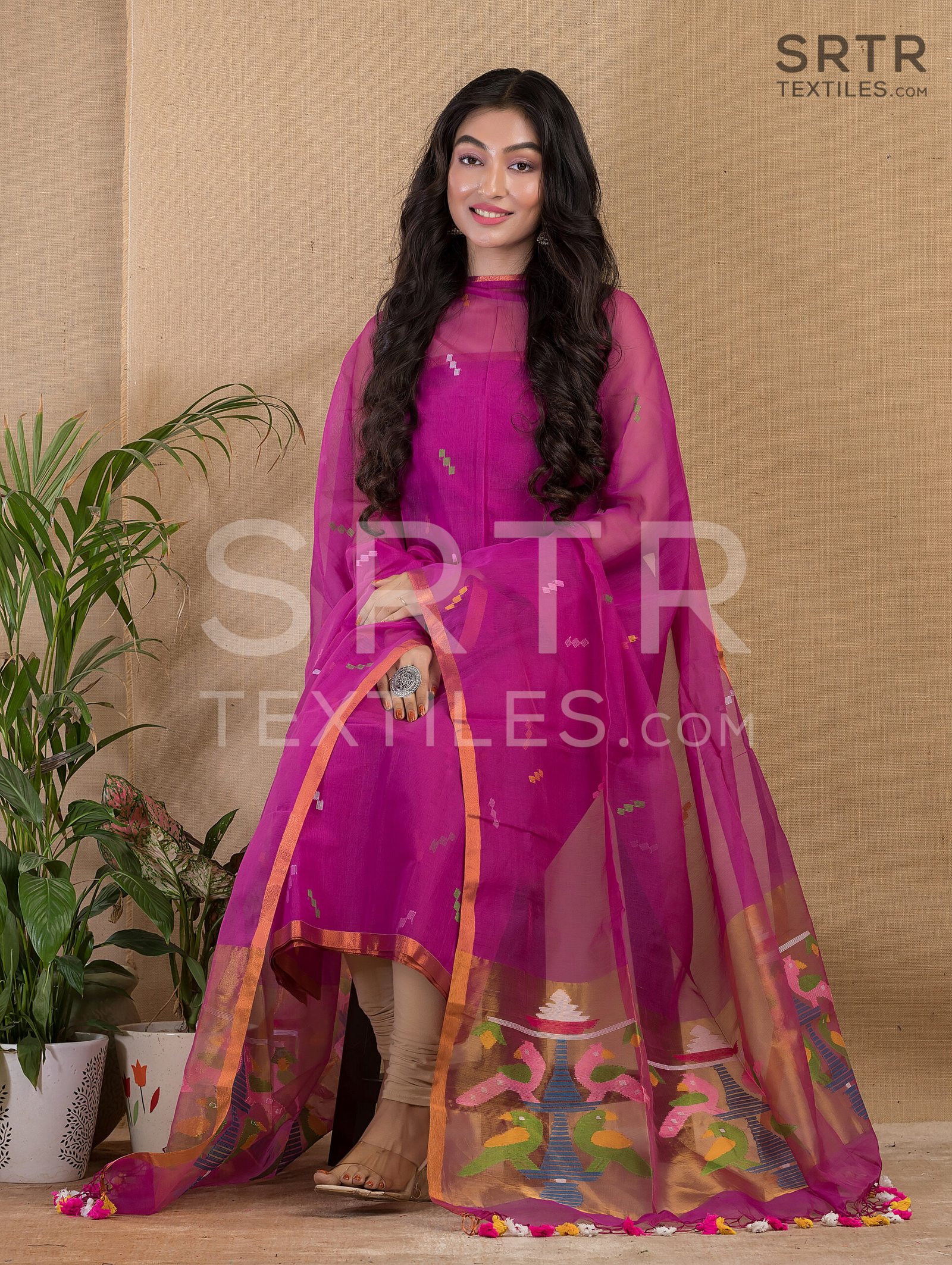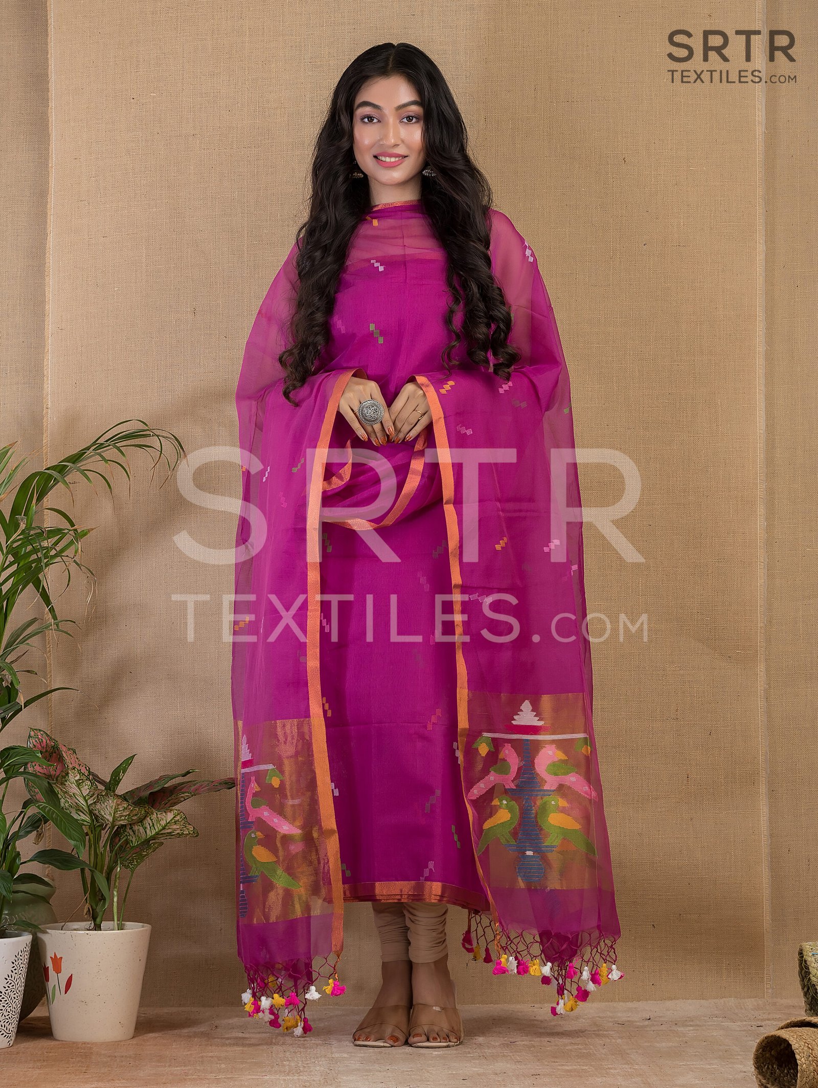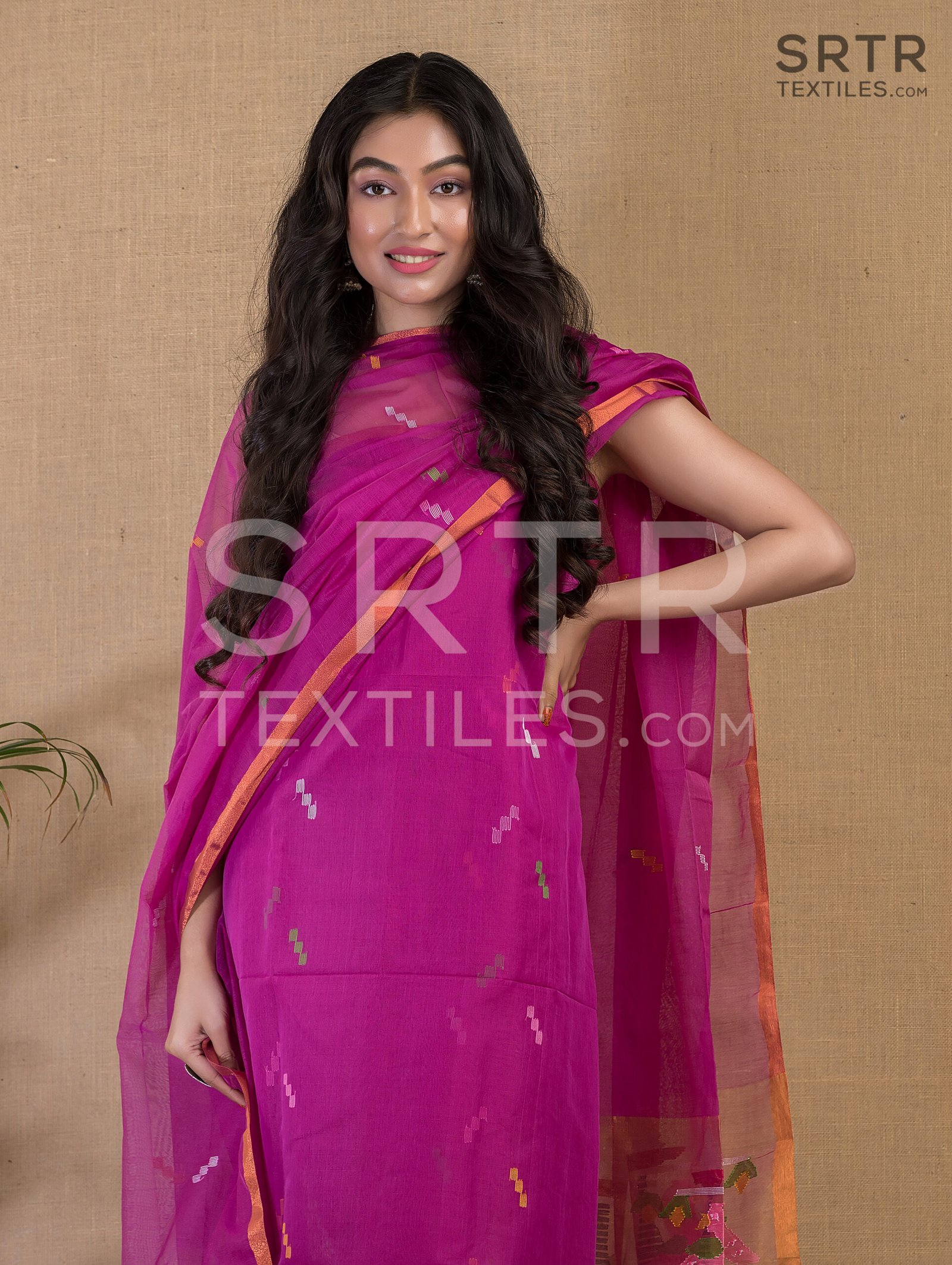 Muslin Unstitched Jamdani Suit – Elegant 2-Piece Set