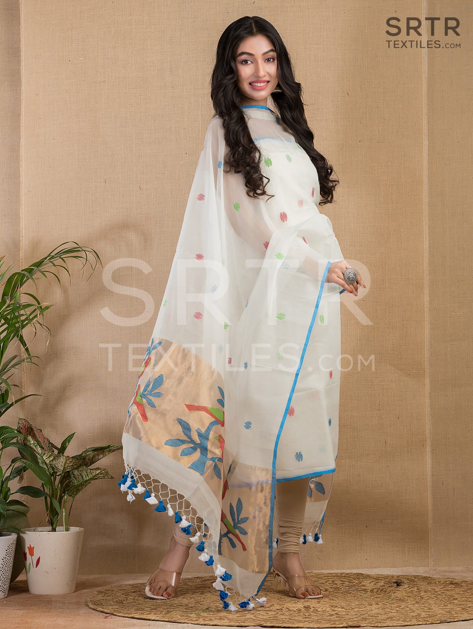 Muslin Unstitched Jamdani Suit – Elegant 2-Piece Set