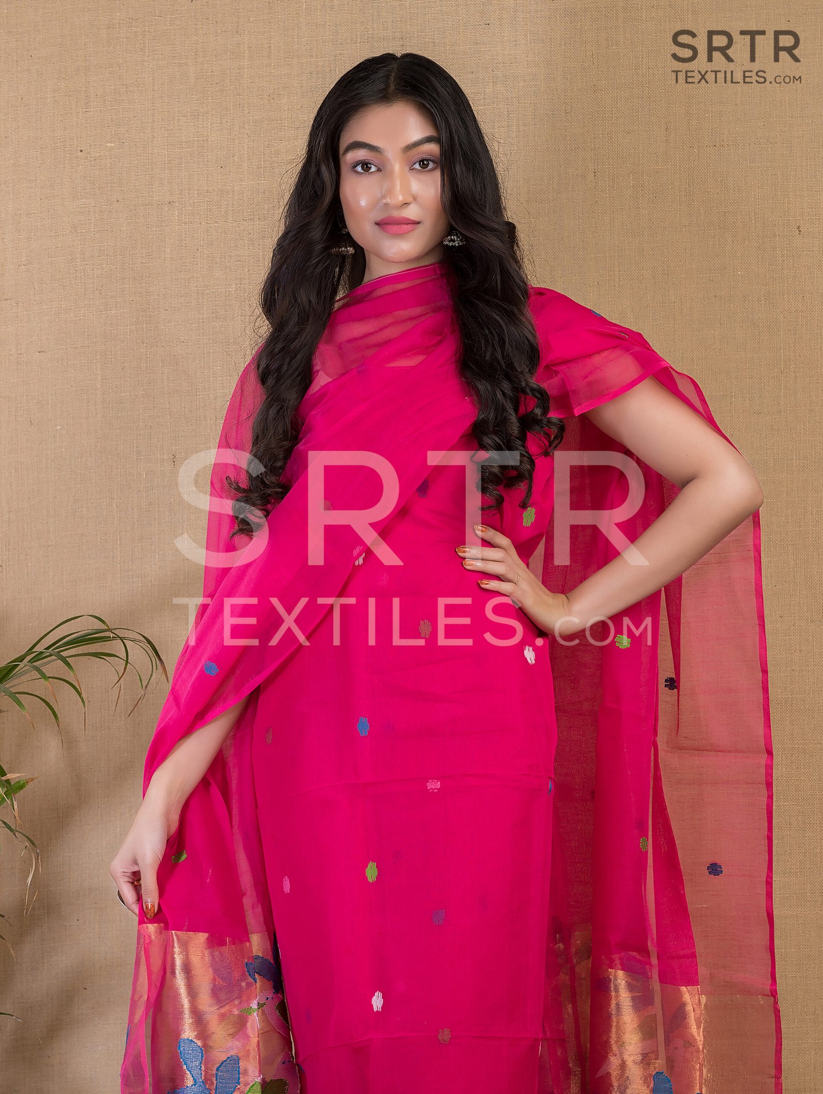 Muslin Unstitched Jamdani Suit – Elegant 2-Piece Set