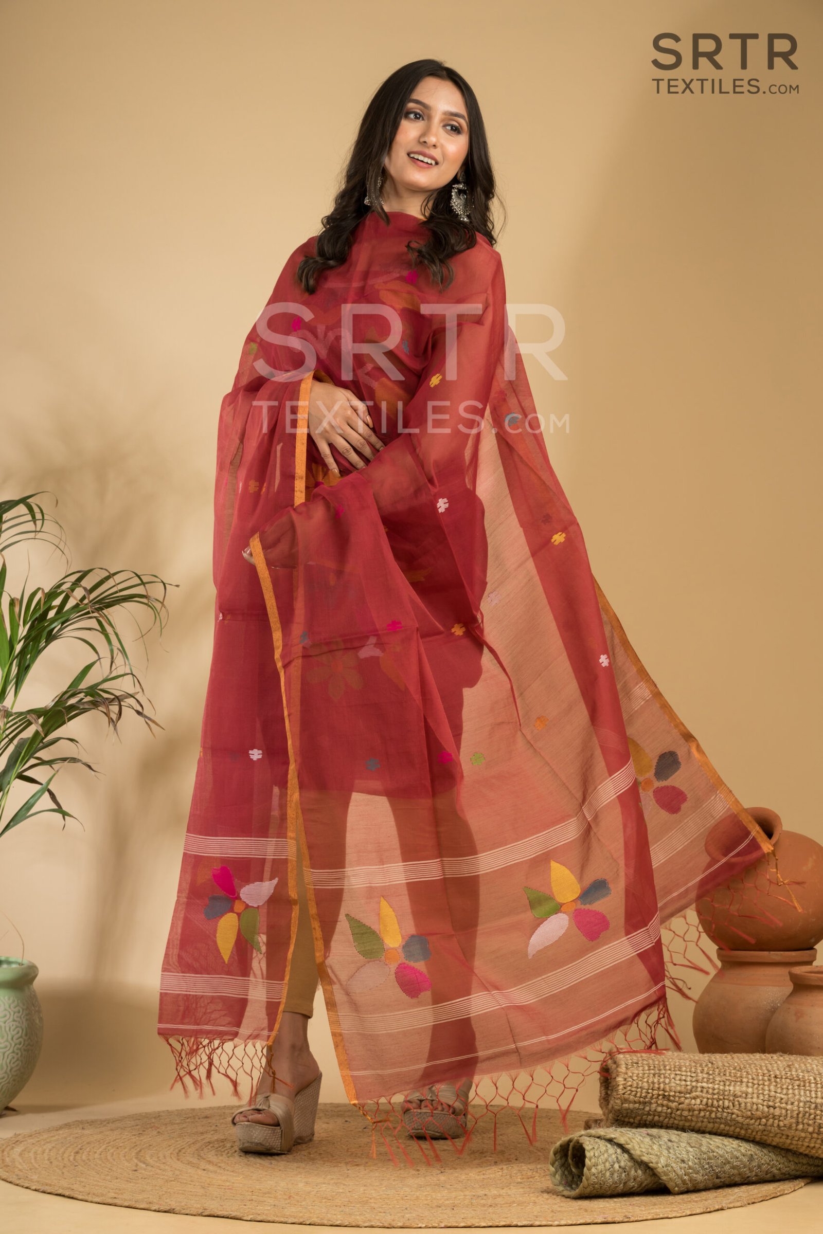 Muslin Unstitched Jamdani Suit – Elegant 2-Piece Set