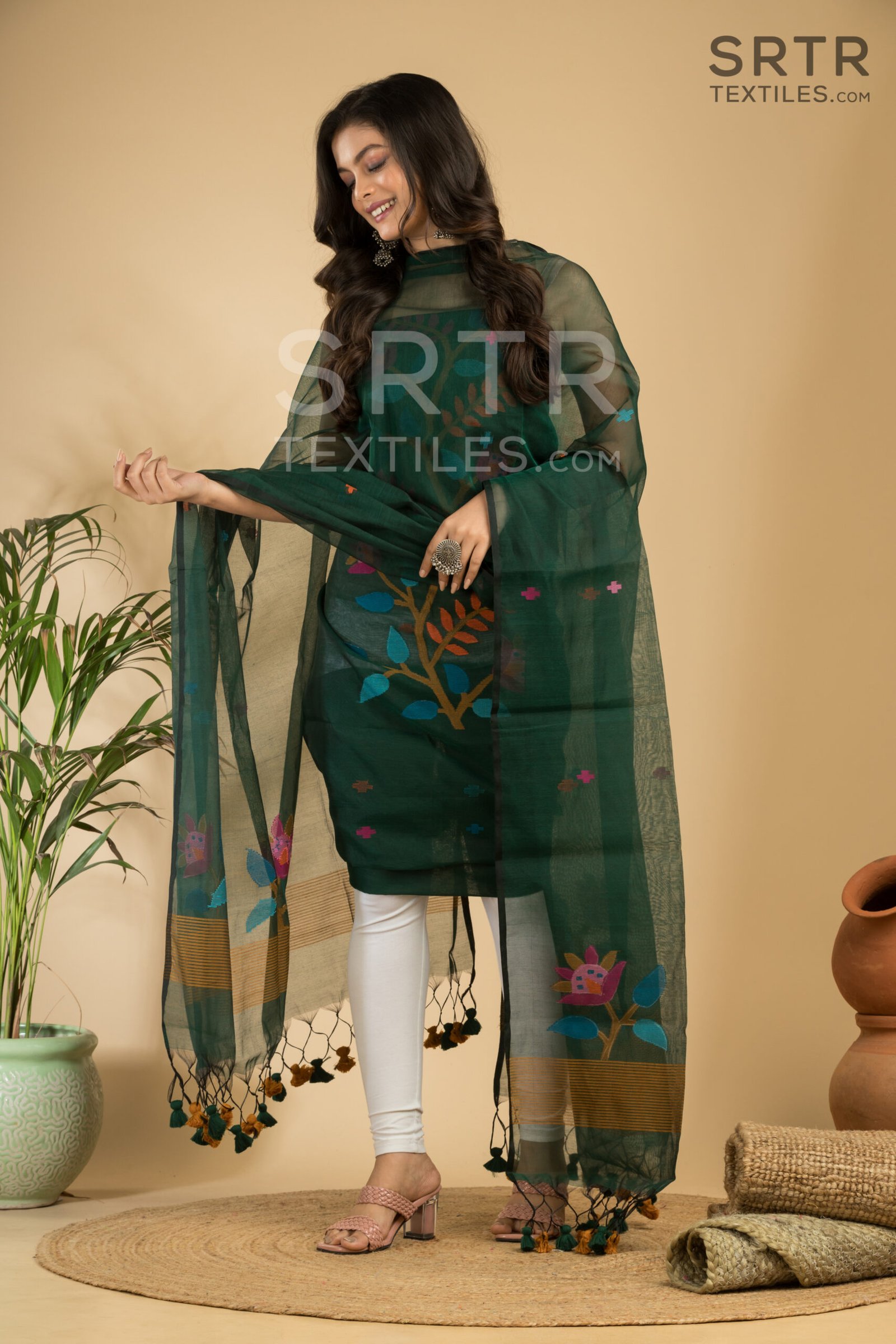 The beauty of our Muslin Unstitched Jamdani Suit lies in its adaptability. Pair it with elegant jewelry and heels for a formal setting, or go for a traditional look with minimal accessories and ethnic footwear. Its classic design transcends seasonal trends, making it a timeless addition to your clothing collection. Enjoy the comfort and style it brings, no matter the occasion.