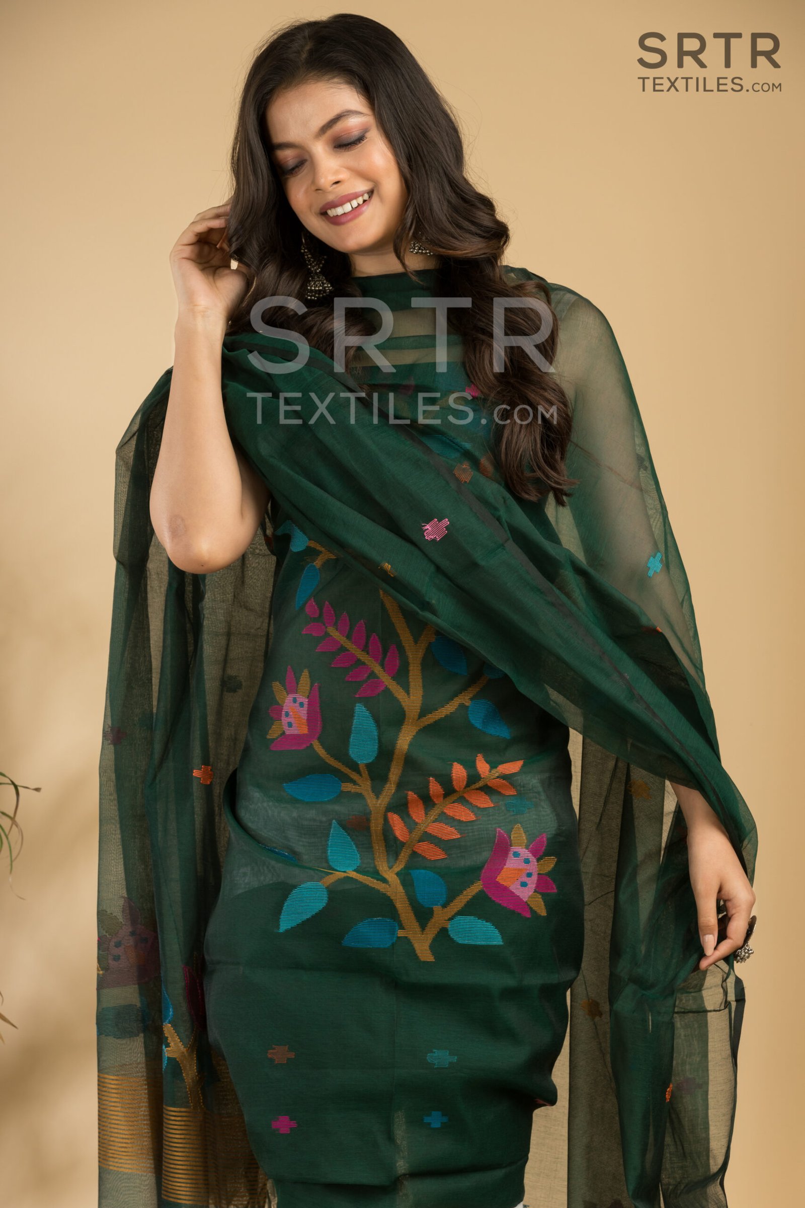 Unveil Your Elegance with Our Muslin Unstitched Jamdani Suit