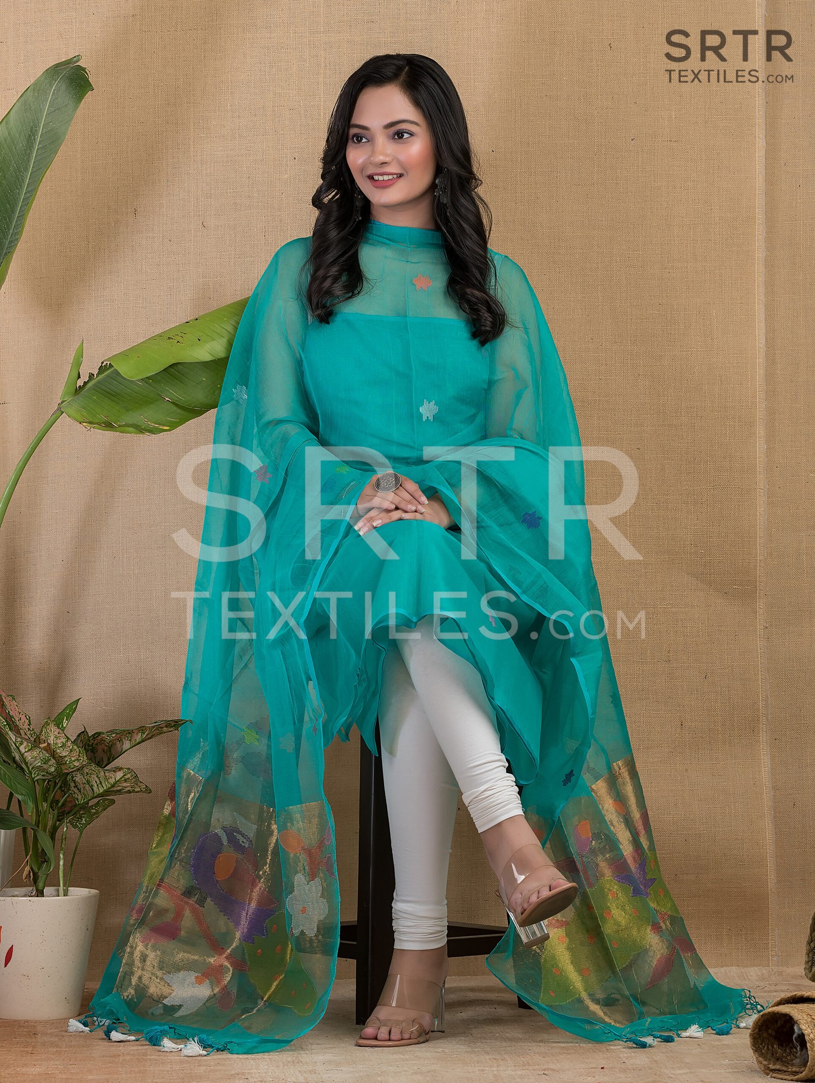 Muslin Unstitched Jamdani Suit – Elegant 2-Piece Set