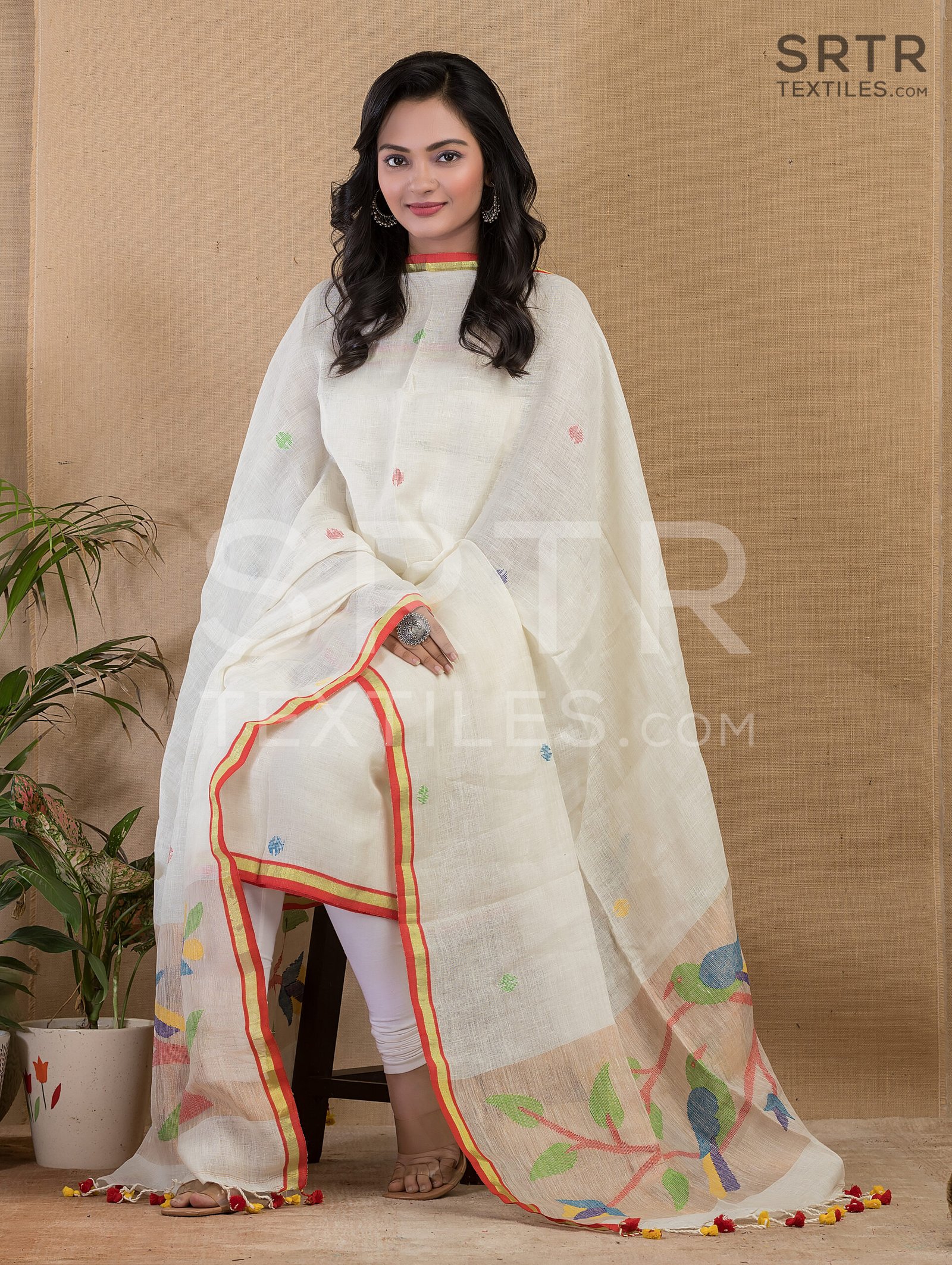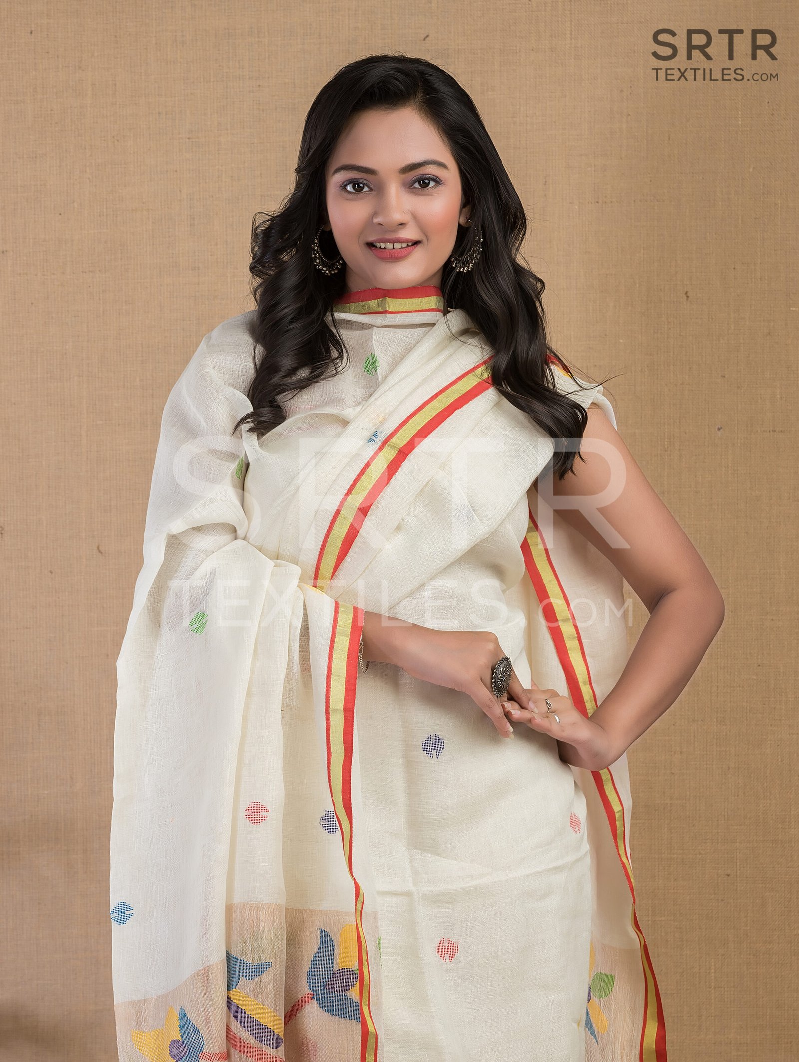 Pure Jayashree linen Unstitched Jamdani Suit – Elegant 2-Piece Set