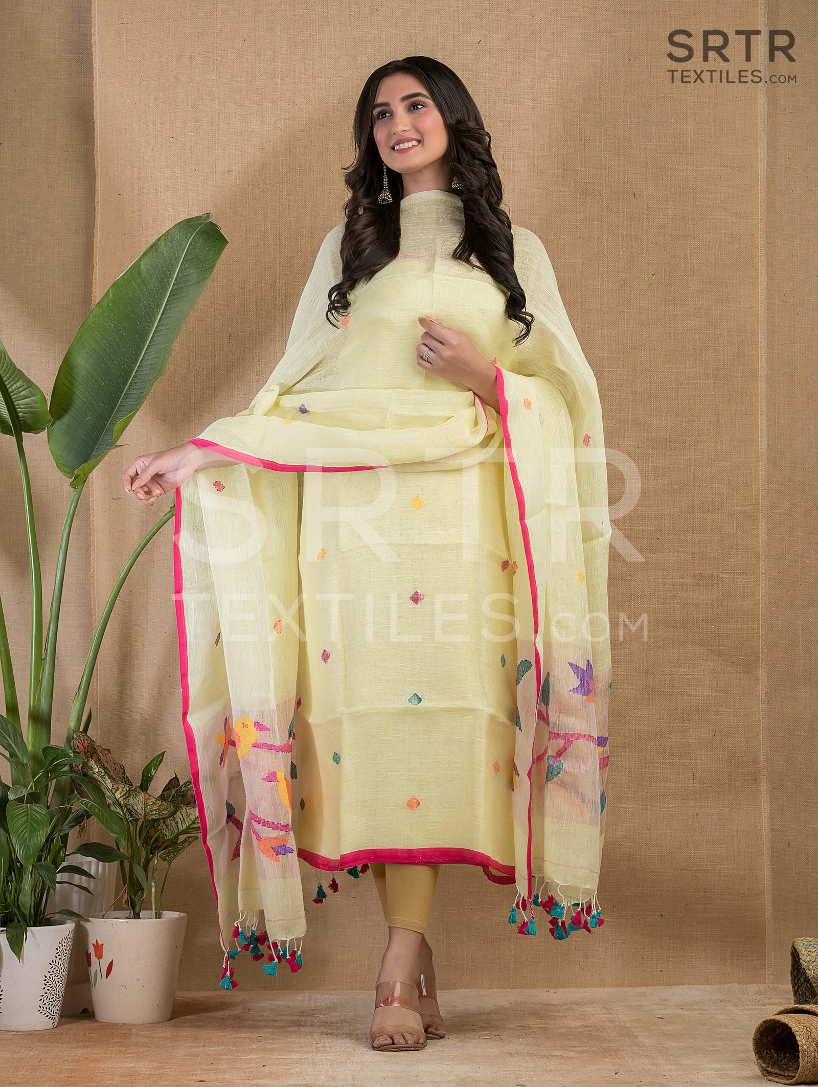 Made from pure Jayashree linen, this fabric’s lightweight texture offers superior comfort without compromising on quality. Renowned for its soft finish and breathable nature, linen is a preferred choice, especially in warmer climates. The Jamdani weaving technique incorporated into this suit adds intricate patterns that are rich with cultural significance. Each motif tells a story, reflecting the artisan’s dedication and skill, ensuring that you own not just a garment but a piece of heritage.