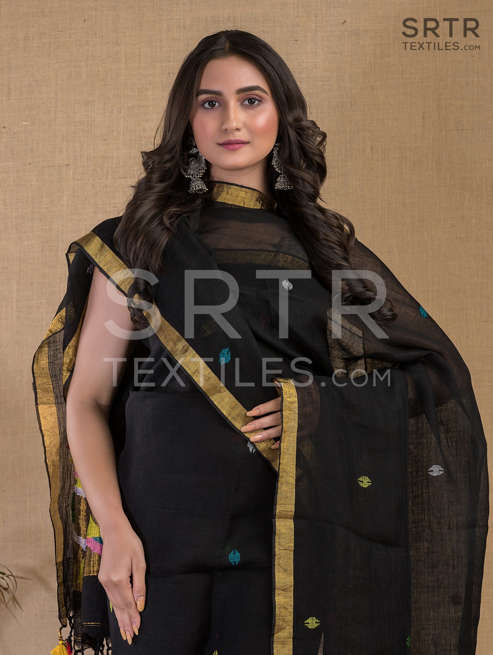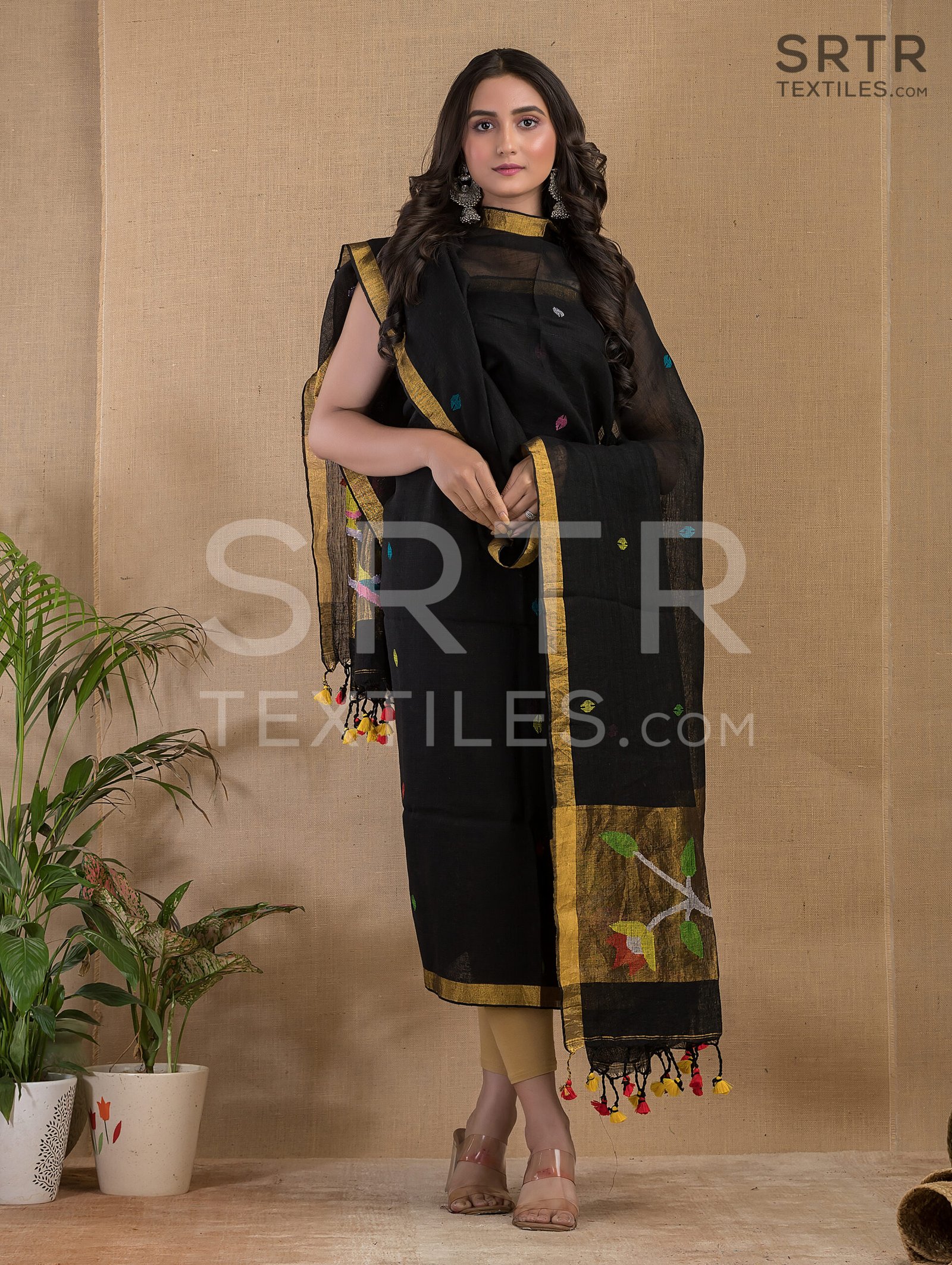 Pure Jayashree linen Unstitched Jamdani Suit – Elegant 2-Piece Set