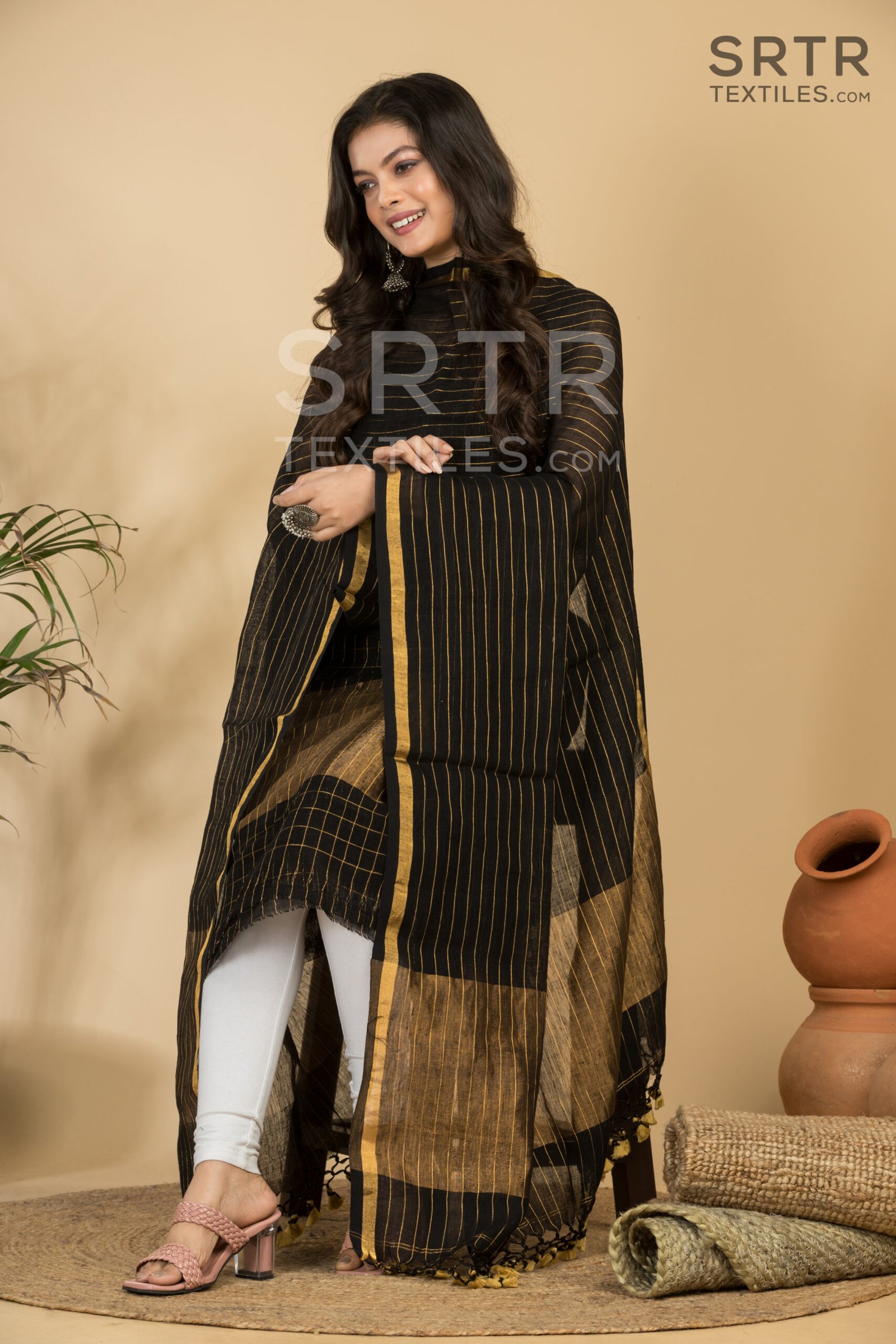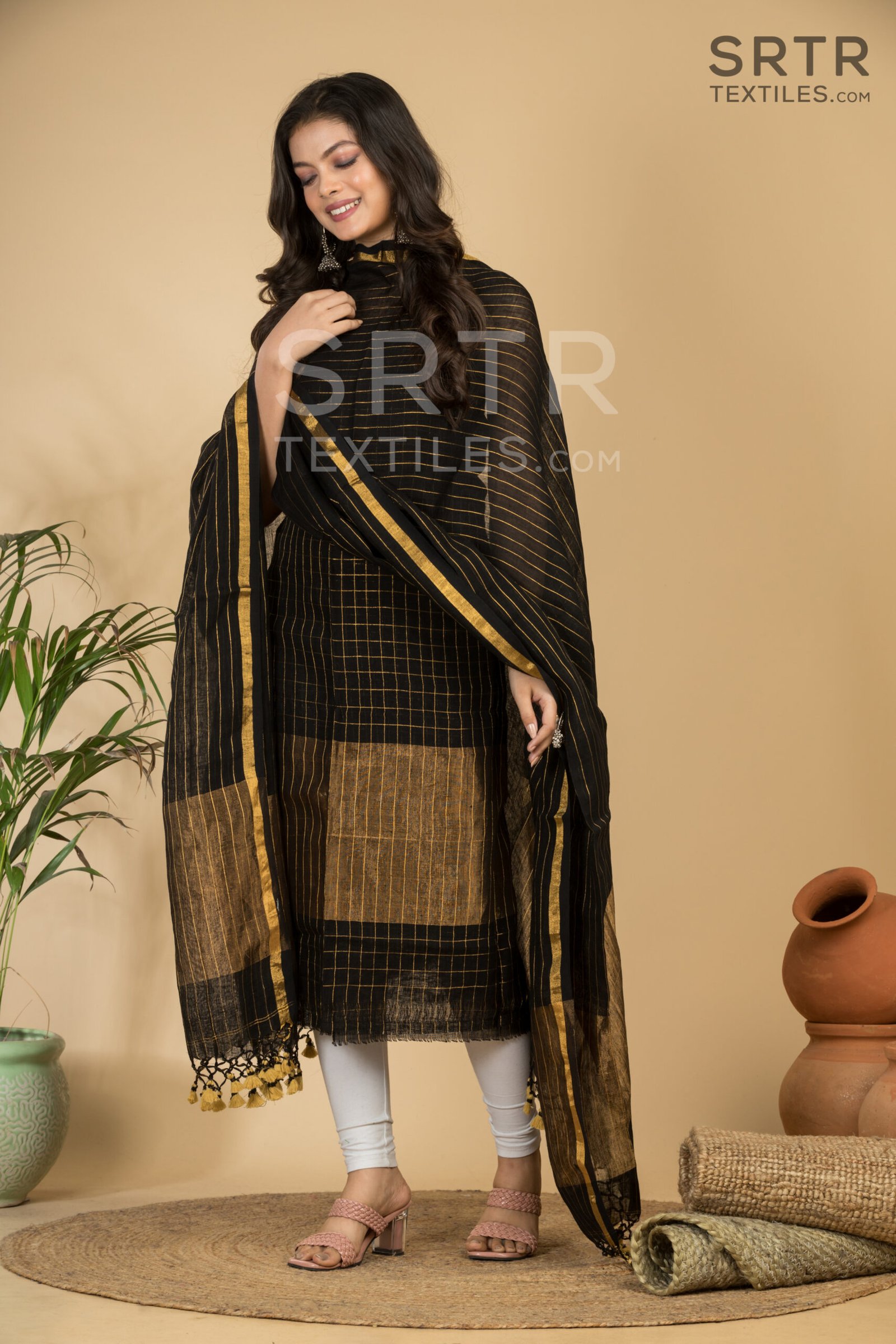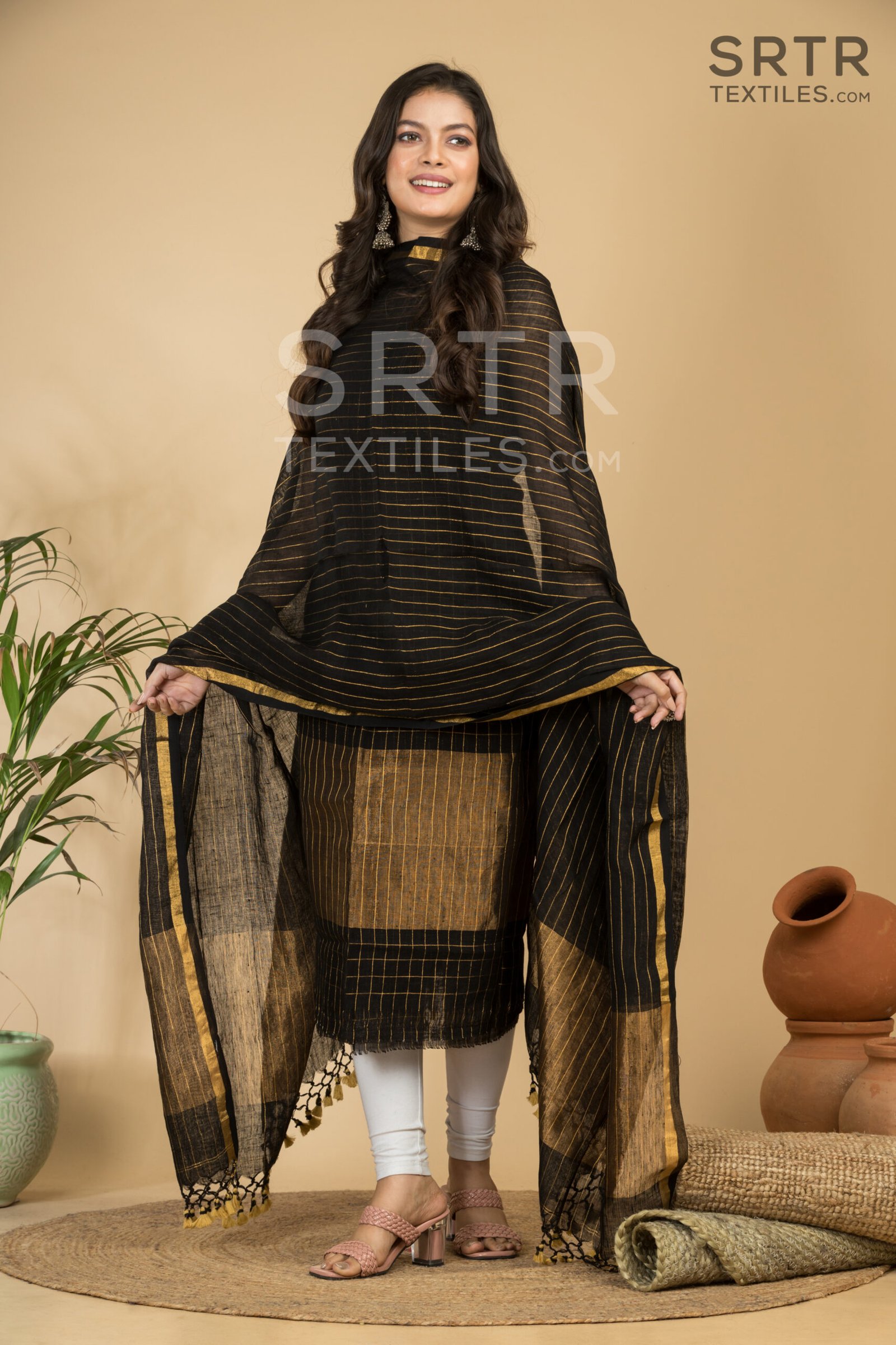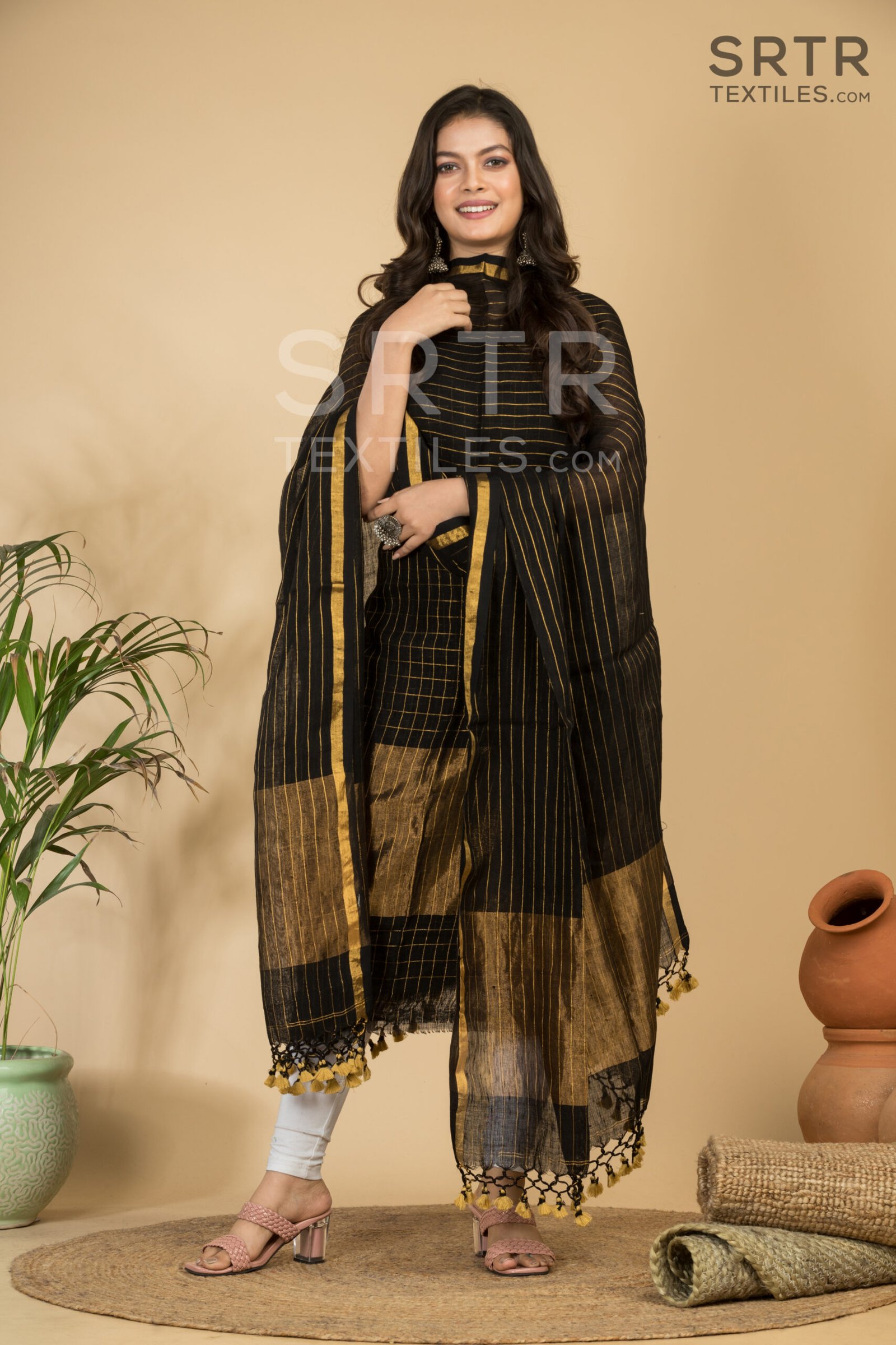 Pure Linen Unstitched Jamdani Suit – Elegant 2-Piece Set