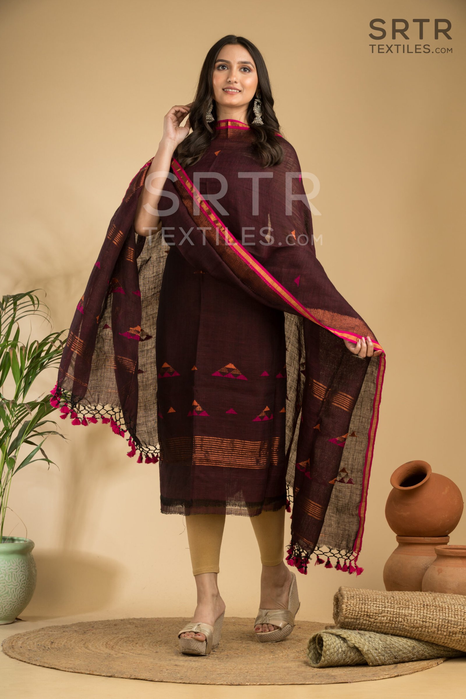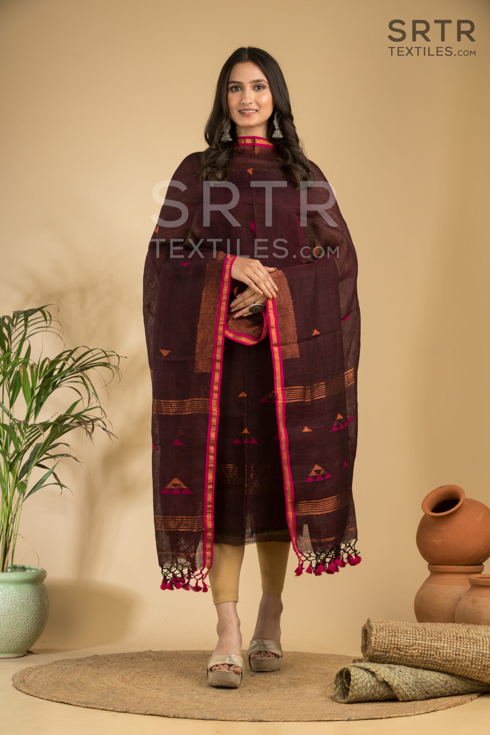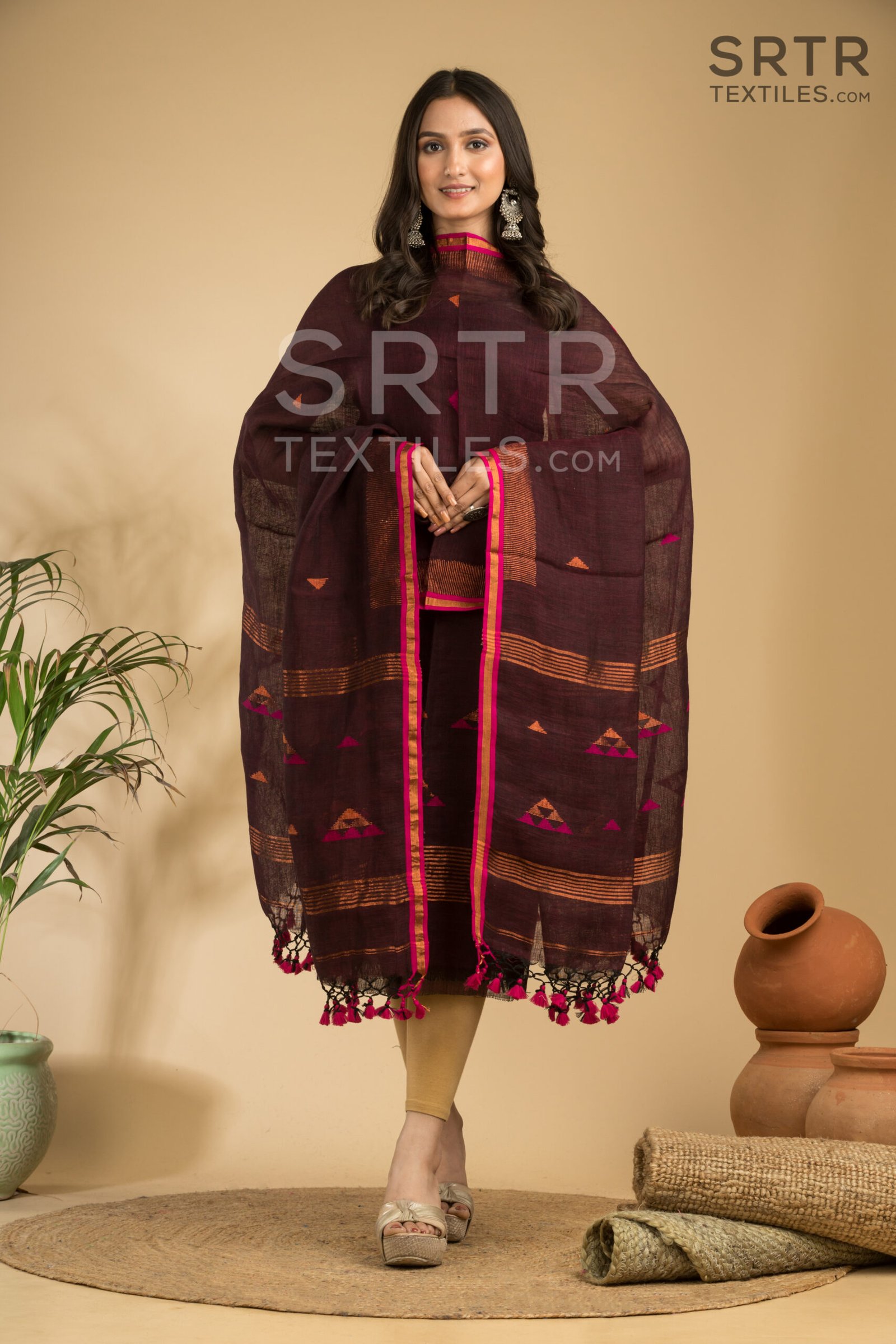 Pure Linen Unstitched Jamdani Suit 2-Piece Set –