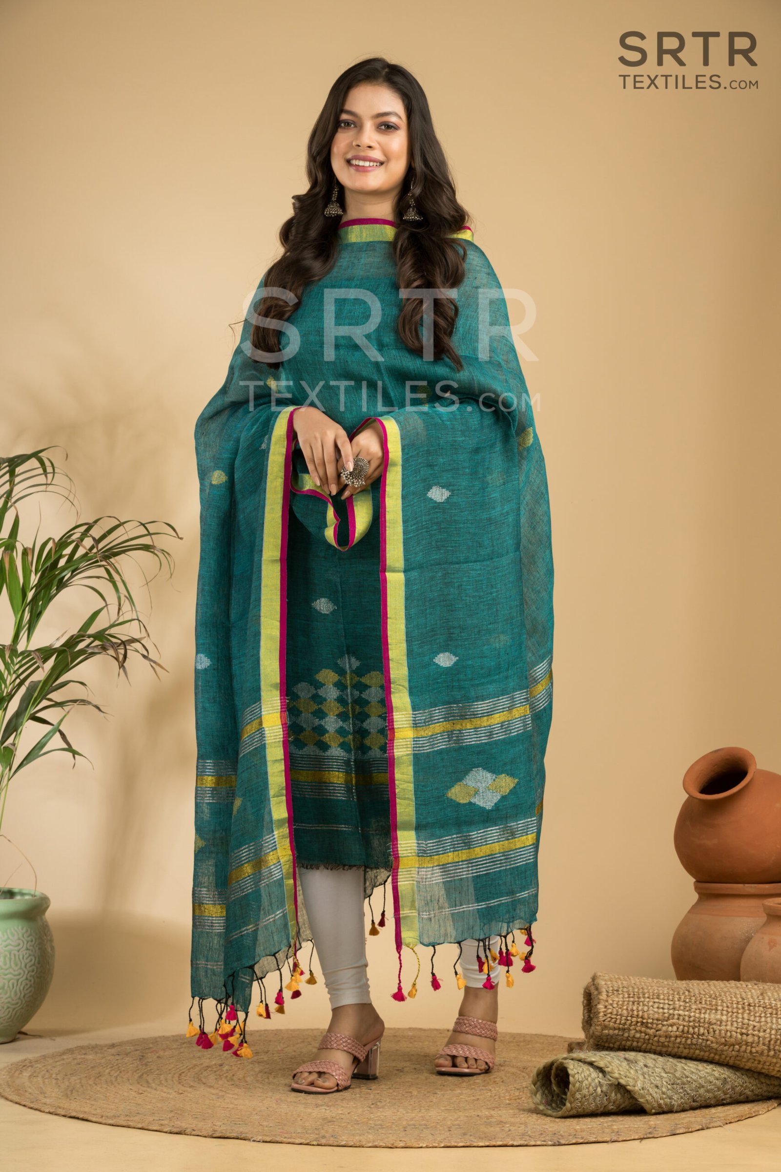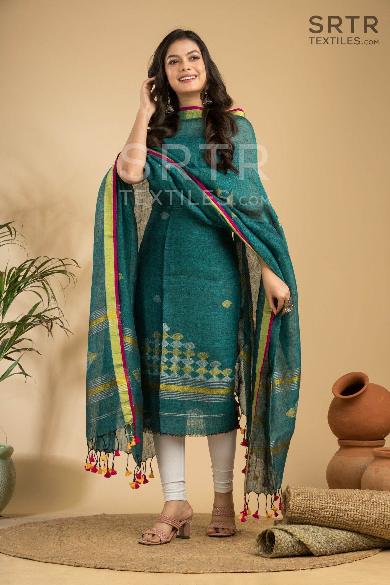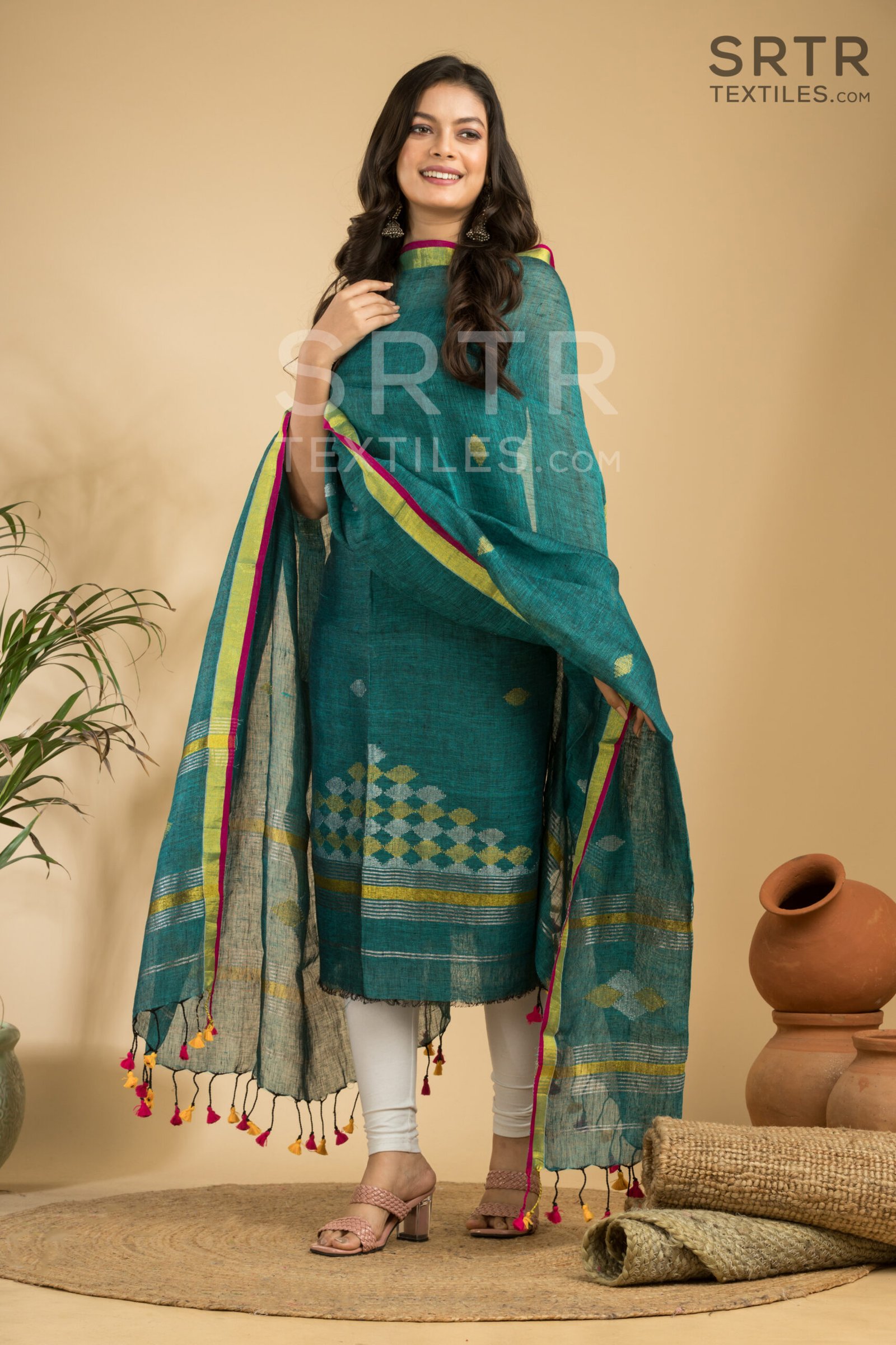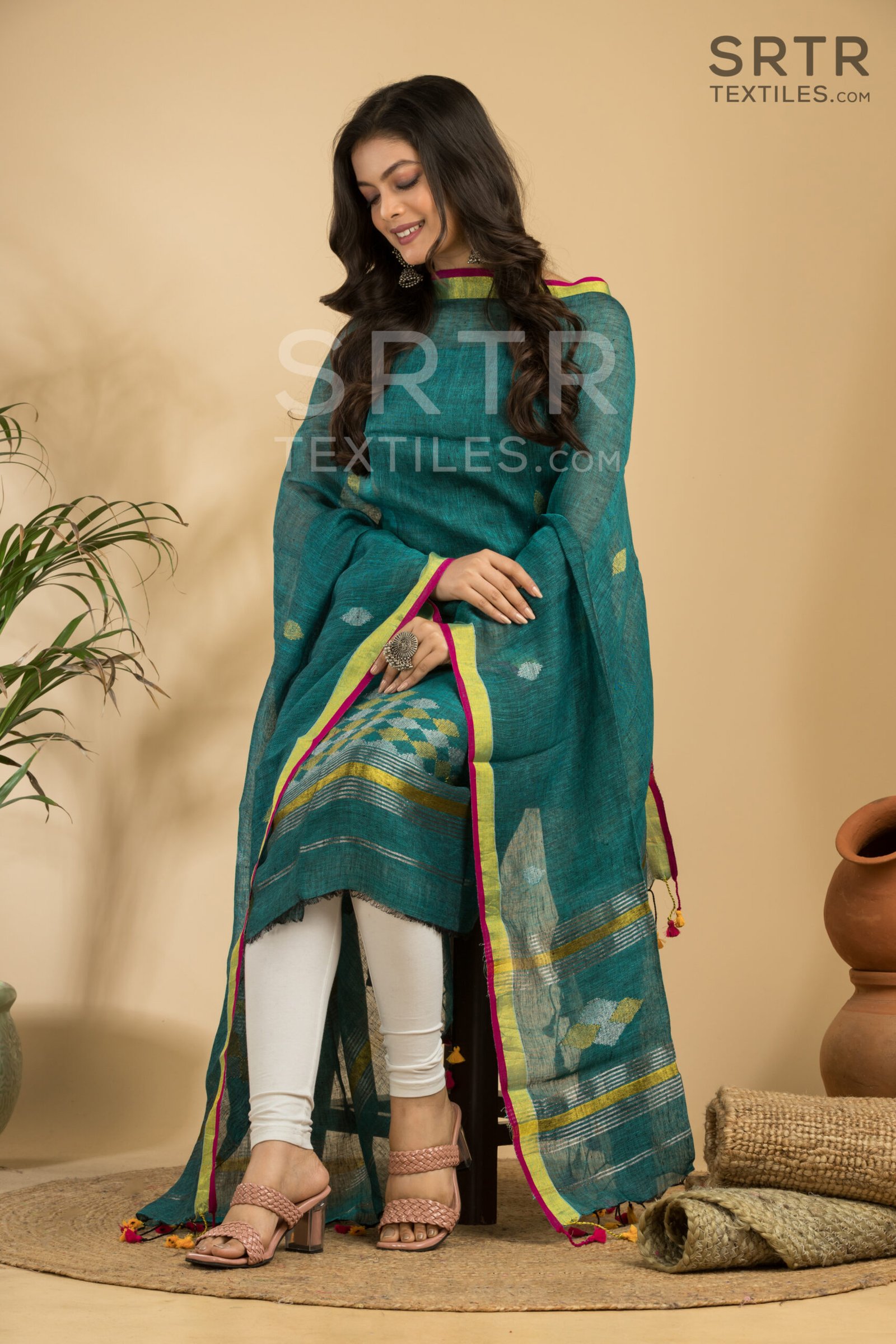 The Jamdani weaving technique is one of the cornerstones of traditional Indian craftsmanship. Each piece of our suit is intricately designed, showcasing beautiful patterns that reflect the skill and artistry of our weavers. The combination of pure linen’s breathable texture and the traditional Jamdani designs creates a stunning visual appeal that is both eye-catching and sophisticated.