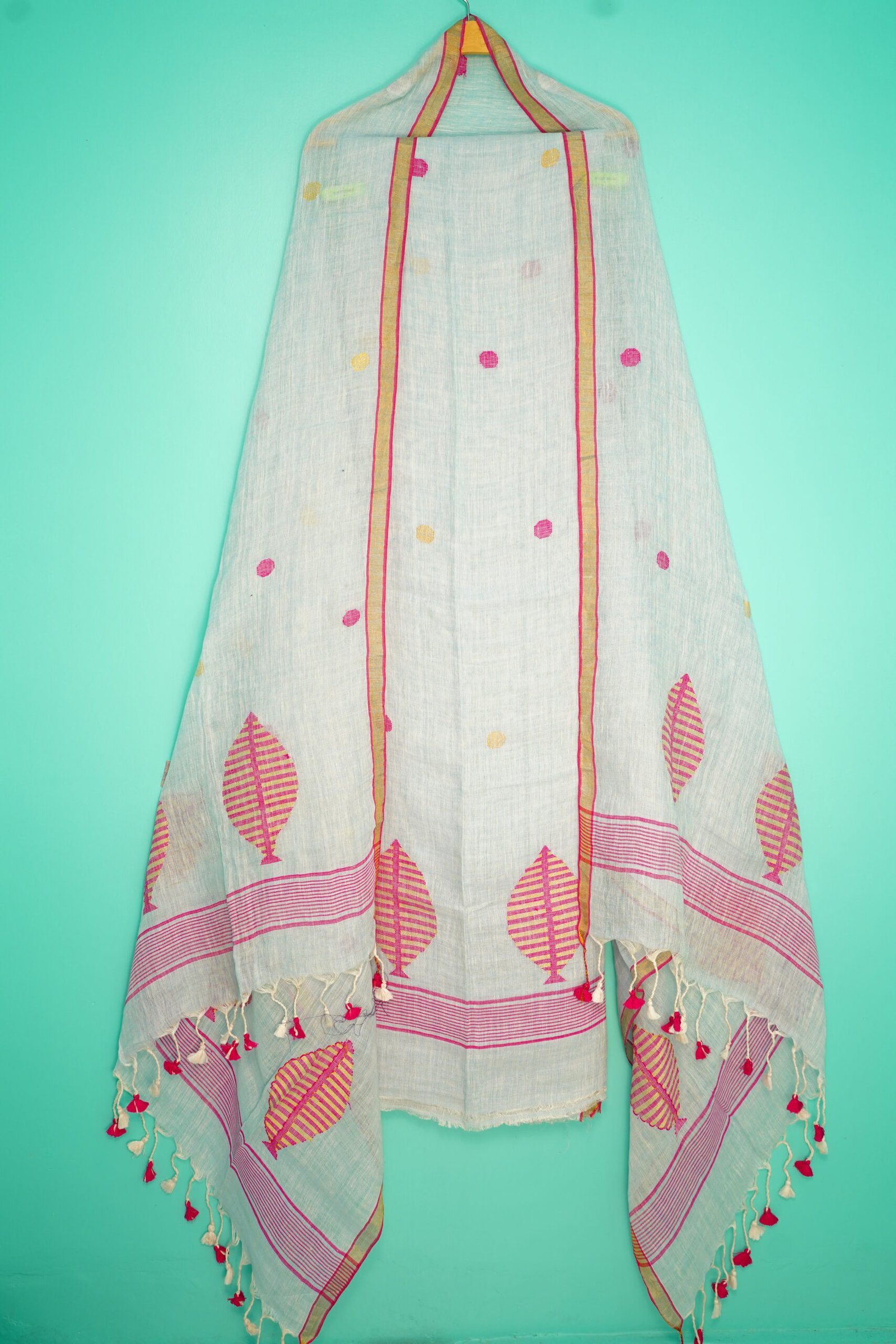 Pure Linen Unstitched Jamdani Suit – Elegant 2-Piece Set