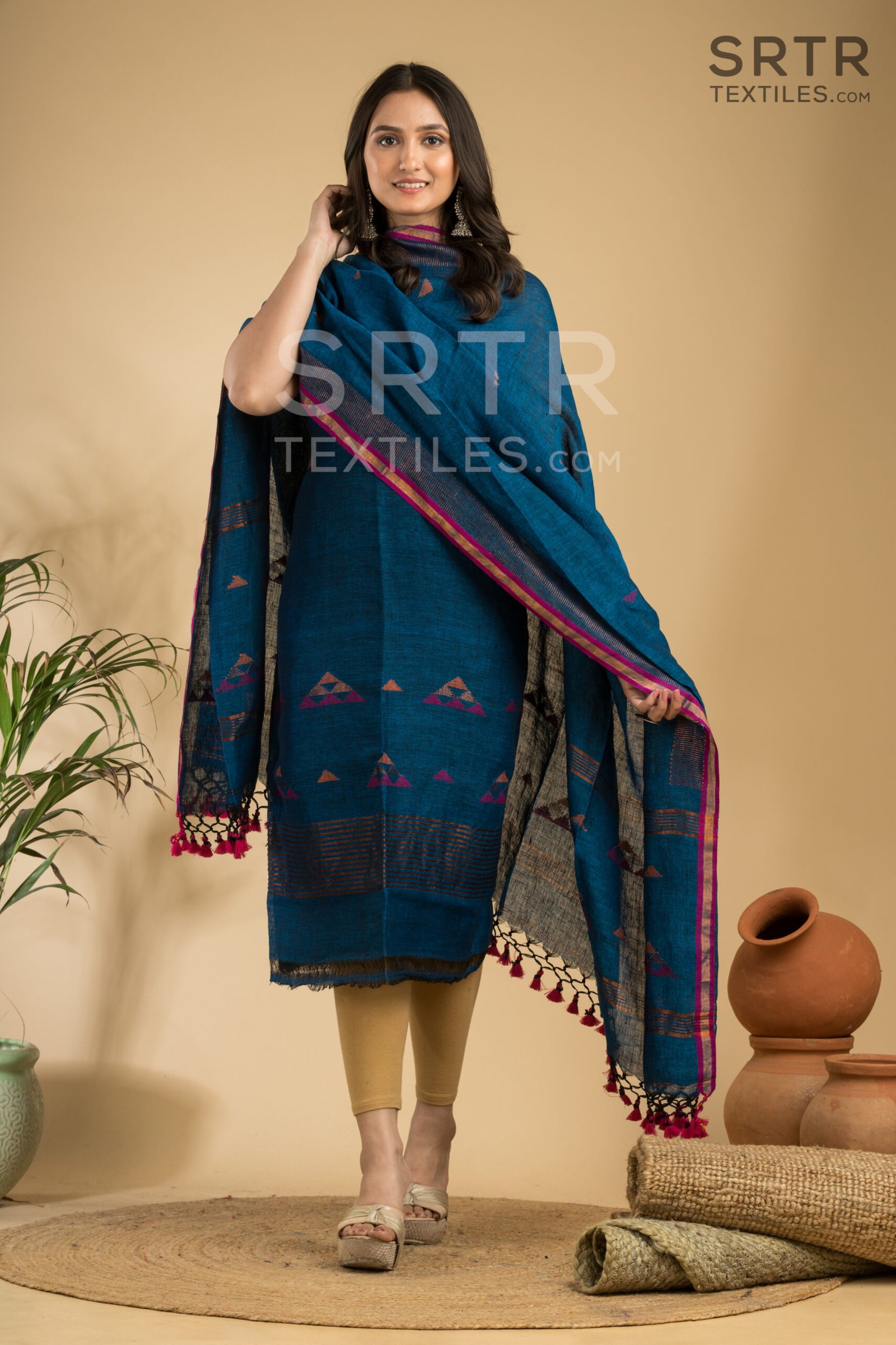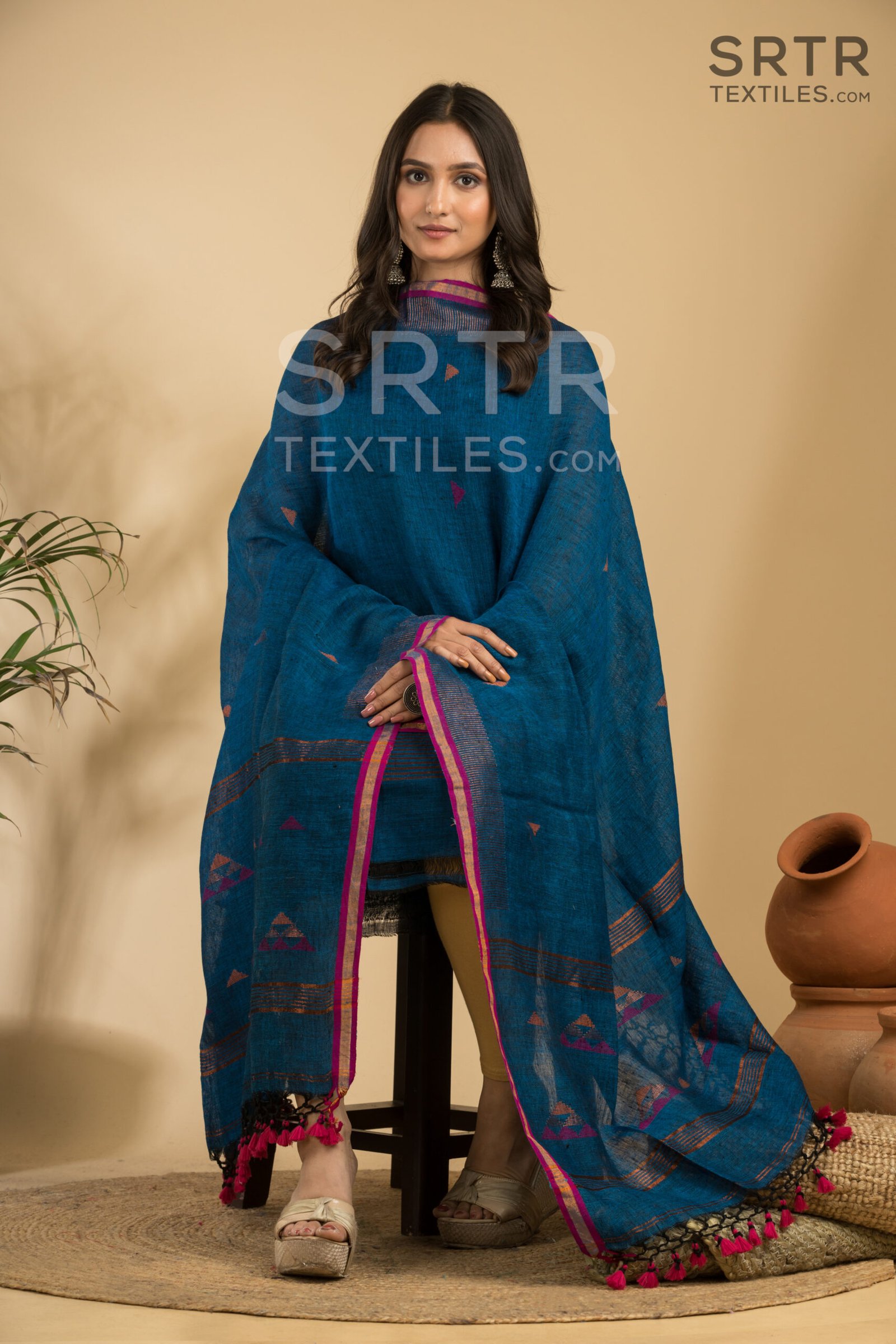 Pure Linen Unstitched Jamdani Suit – Elegant 2-Piece Set