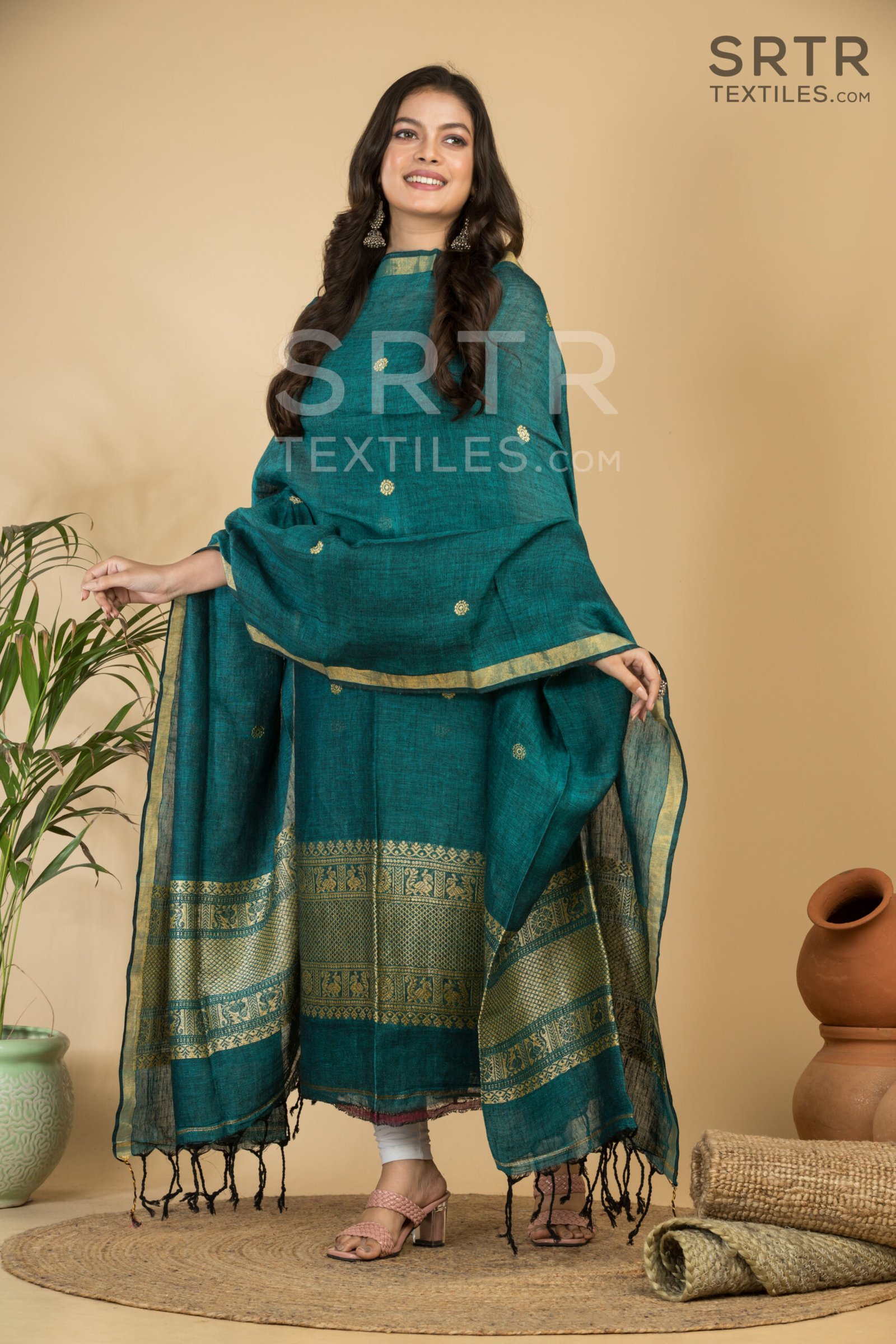 This two-piece ensemble combines traditional Jamdani weaving techniques with contemporary design elements, making it a unique addition to your wardrobe. The intricate patterns handwoven into the linen add a touch of sophistication and heritage to your outfit, bridging the gap between old-world charm and modern trends. Whether you’re dressing up for a special event or embracing everyday elegance, this suit will enhance your overall look seamlessly.
