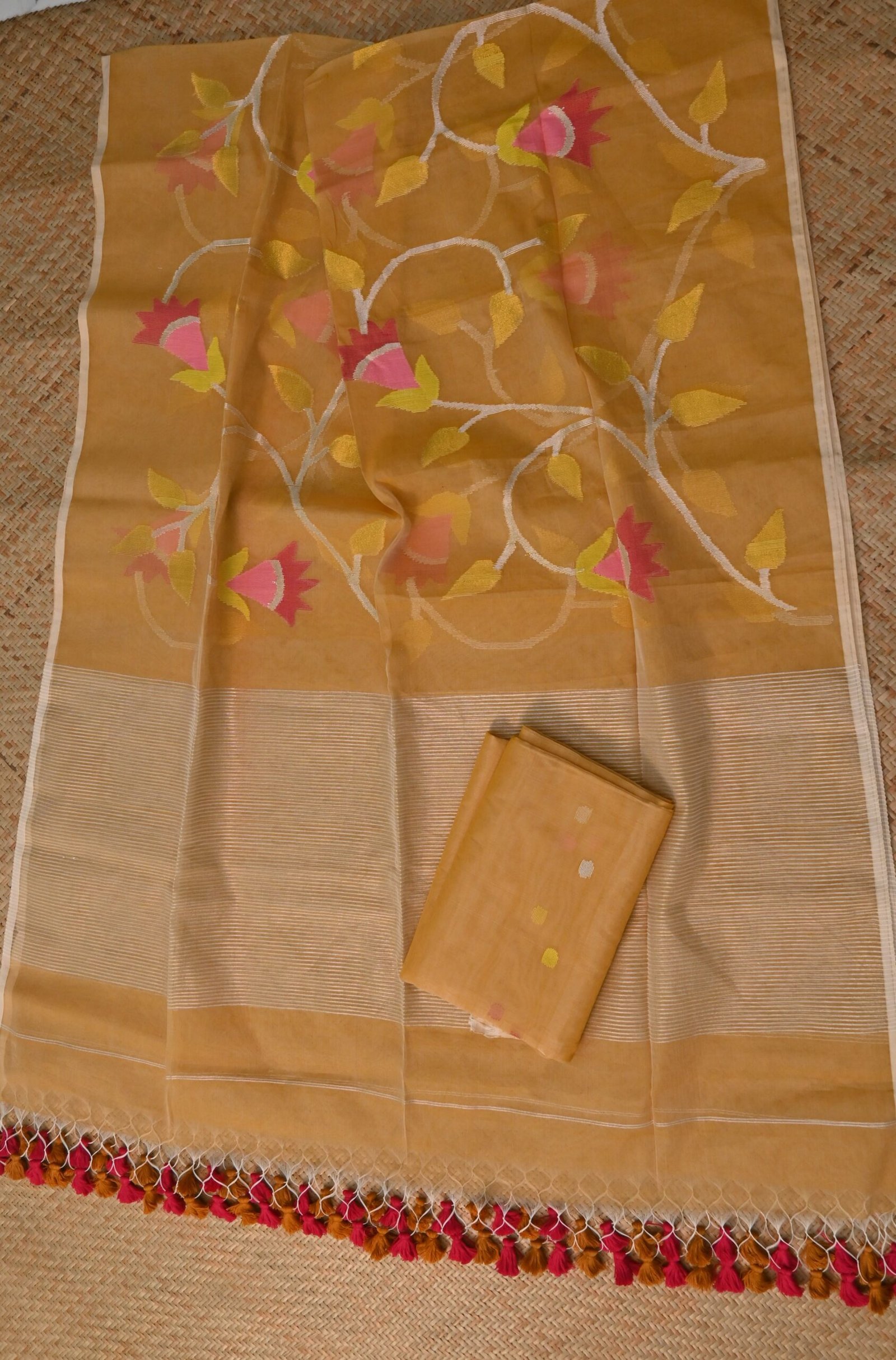 This unstitched suit set provides endless possibilities to customize and create a look that truly reflects your personality. Comprising two pieces, it offers flexibility for tailoring your desired fit and style. The intricate Jamdani patterns, meticulously woven into the fabric, boast a harmonious blend of artistic tradition and modern elegance. Each thread is a testament to expert craftsmanship and cultural heritage, ensuring you own not just a garment but a story of refinement and originality.