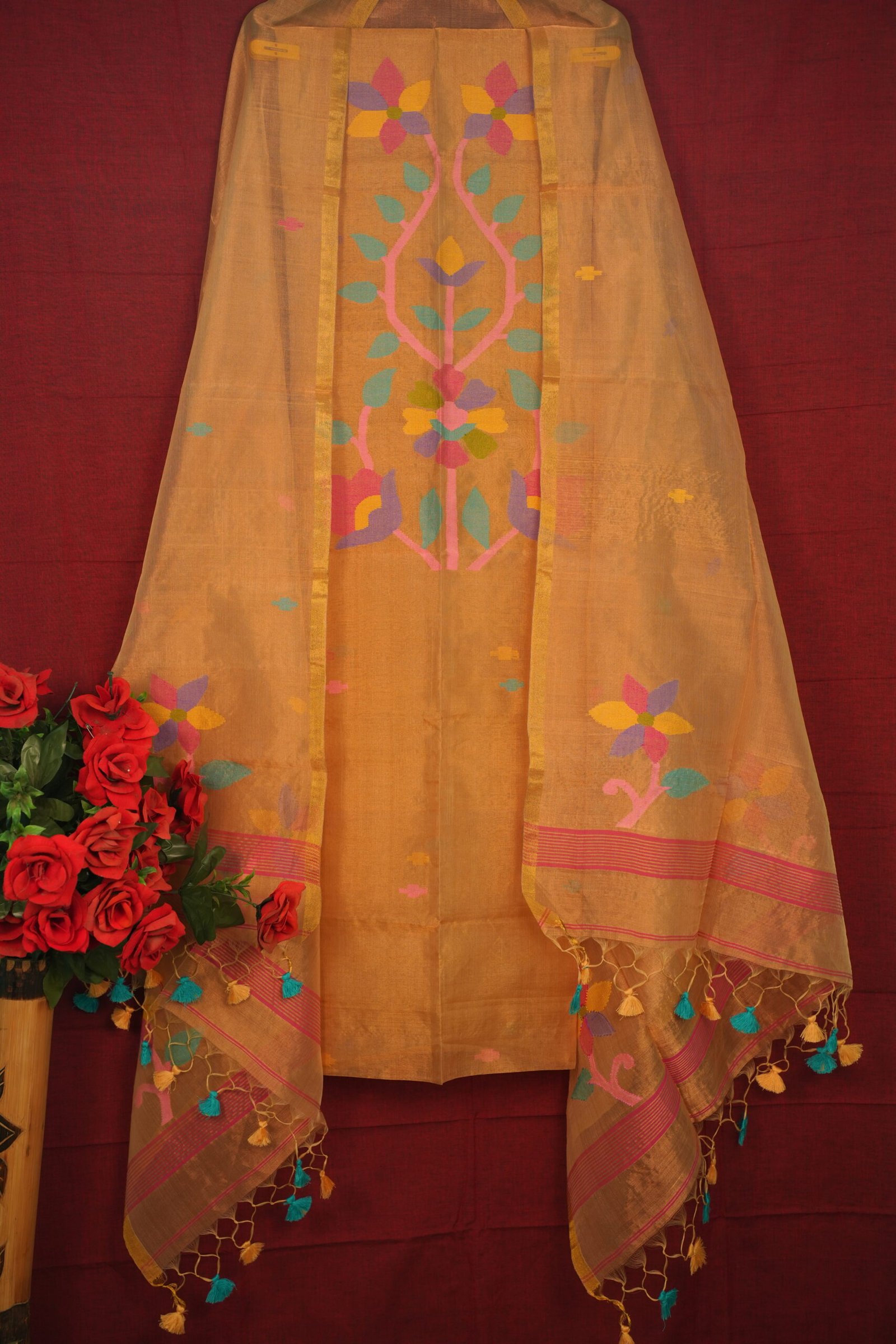 The Tissue Jamdani Suit is crafted to make every event memorable for you. Its lustrous appeal and refined design make it ideal for weddings, festive gatherings, or any occasion where making an impression matters. Pair this beautiful 2-piece set with complementary accessories to create a sophisticated and complete look that exudes elegance.